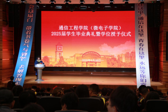 典礼伊始,现场播放了精心制作的暖场视频,回顾了2025届学子在校期间的成长点滴。从课堂学习到科研竞赛,从校园活动到社会实践,一幕幕画面勾起了毕业生们的美好回忆,现场洋溢着感动与不舍的氛围。