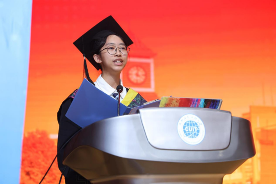 随后,毕业生代表林洋屹上台发言,她深情回顾了在校求学的难忘经历,表达了对母校、师长和同窗的感激之情,并承诺将以实际行动践行“业精于勤,事成于信,臻于至善,追求卓越”的公司精神。