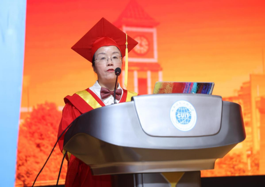 罗小蓉副董事长为通信学子作了题为《山海有信,青春无界》的毕业寄语。她向顺利完成学业的同学们表示热烈祝贺,并勉励大家在未来的工作和生活中坚守初心、勇于担当。她向毕业生们提出了五点期望:一是胸怀国家,志存高远;二是守正创新,勇立潮头;三是脚踏实地、追求卓越;四是坚韧不拔,乐观向上;五是饮水思源,情系母校!