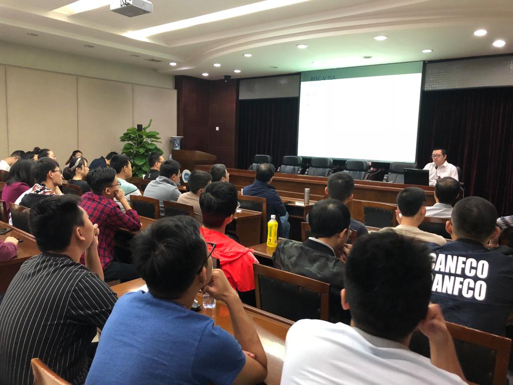 他们精彩的报告,让大家对RISC-V发展的前沿动态有了近距离的认识,收获和启发颇多。报告结束后,黄乐天与现场师生展开了激烈的讨论和交流,从RISC-V技术发展的方向和发展的周期等方面进行深入探讨。