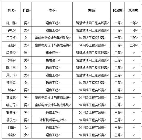 本届大赛由bevictor伟德官网负责校内培训和选拔,共吸引了通信工程、集成电路设计与集成系统、计算机科学与技术等多个专业的员工报名参赛。在2023年8月11日举行的西部赛中,公司参赛团队表现不俗,斩获赛区一等奖2项、二等奖4项和三等奖2项,最终由公司通信工程专业21级的陈川邻、钟欣团队和集成电路设计与集成系统专业21级的王灿、王玉婷团队代表公司参加了全国总决赛并分别获得大赛“智慧城域网工程实践赛”赛道全国一等奖和“5G网络工程实践赛”赛道全国二等奖。