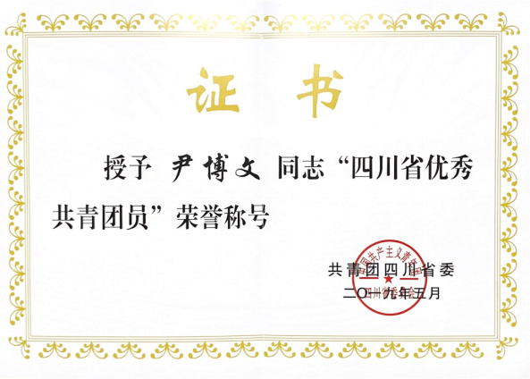 公司优秀团干尹博文获四川省“优秀共青团员”称号,为全校唯一获此殊荣的员工。尹博文是入党积极分子,担任公司员工会主席和公司第十三期青年马克思主义培养工程精英班团支部书记的职务,同时是通信工程专业165班的班长。尹博文在大学期间各方面表现优异,获多项文体、科技类竞赛奖项。