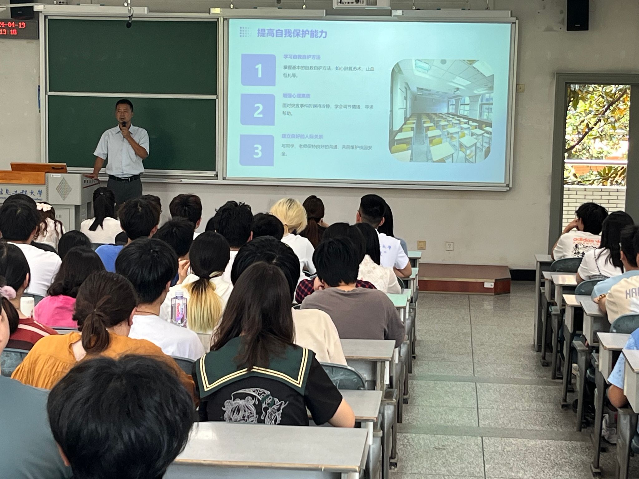 刘畅首先强调安全教育重要性,要求同学培养安全意识,强调安全是生命之基,树立“安全第一”的思想,并要求同学遵守公司各项安全规定,确保个人与集体安全。然后又从防火防盗、交通出行、网络信息安全、非机动车安全管理、反网络诈骗、校外兼职实习、紧急自救以及心理健康与人际交往等安全管理的各个方面对同学们进行了安全教育。他用发生在身边的实际案例,以案说法,教育在同学要高度重视各类安全隐患,要求广大同学提高安全意识,时刻保持警惕。他强调参会的员工党员,应当时刻严格要求自己,带头遵守法律法规、校规校纪,积极发挥党员的先锋模范作用。最后对各年级各班级寝室、实验室安全自查自纠的相关工作进行了布置。