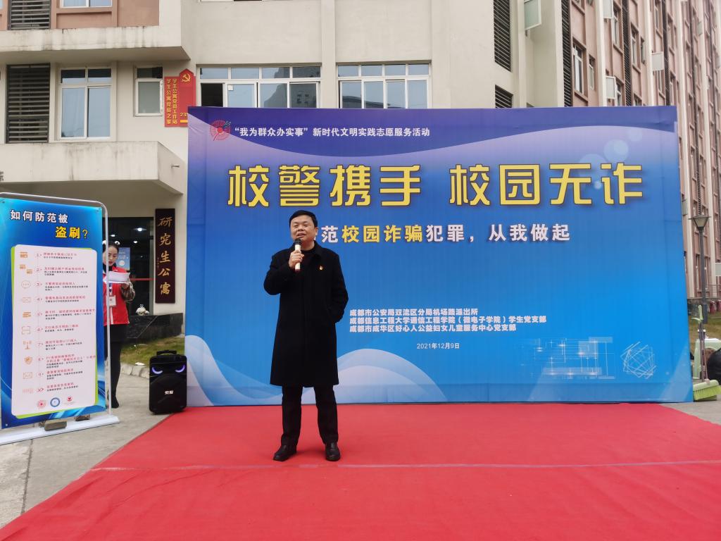 最后,员工党支部党员同志们配合成都市公安局双流区分局机场路派出所民警,向同学们发放宣传资料,讲解相关防诈骗知识,面对面讲解电信诈骗的类型、惯用的作案手段,回答同学们提出的问题,给大家解疑释惑。在此过程中,各位员工党员率先垂范,在为同学服务中提高政治意识,增强支部凝聚力,发挥党员先锋模范作用,进一步增强了大家抵制电信诈骗违法犯罪活动的能力,为“平安成信,和谐成信”建设提供有力推动。