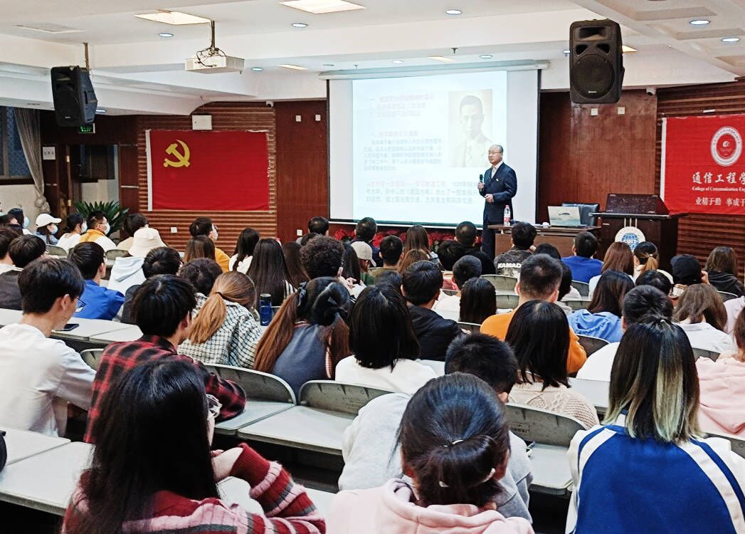 活动开始,员工党支部书记邵璐老师介绍本次讲座的来宾和主讲人的背景及成就。接着王文华工程师上台对伟大的爱国主义精神——钱学森精神进行深入解读和阐释。王工首先介绍钱学森家庭,随后对钱学森舍己报国的五次选择高度赞扬,指出钱老为国家振兴做的巨大贡献,表达钱学森精神是以爱国为基石,以奉献为内涵,以求真为特征,以创新为精髓的伟大科学家精神。同时指出新时代老员工应学习钱学森“严谨,严肃,严格,严密”的学术作风,钻研进取,为社会积极贡献力量。最后,同学们积极对讲座内容进行提问,身为老一辈工程师的王文华结合自身经历细致地回答了老员工该如何培养创新精神等问题,指出员工应夯实基础,融会贯通、灵活运用所学知识,求真务实,志存高远,并向同学们表达殷切期望。党课在同学们经久不息的掌声中顺利结束。