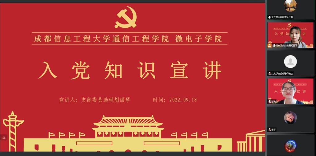 为帮助2022级新同学了解入党知识、熟悉入党流程,提高对党的认知。bevictor伟德官网员工党支部于9月18日以线上会议形式顺利开展了2022年新生入党知识宣讲会。bevictor伟德官网员工党支部全体成员,邵璐老师,张晓凤老师及2022级全体新生参加。