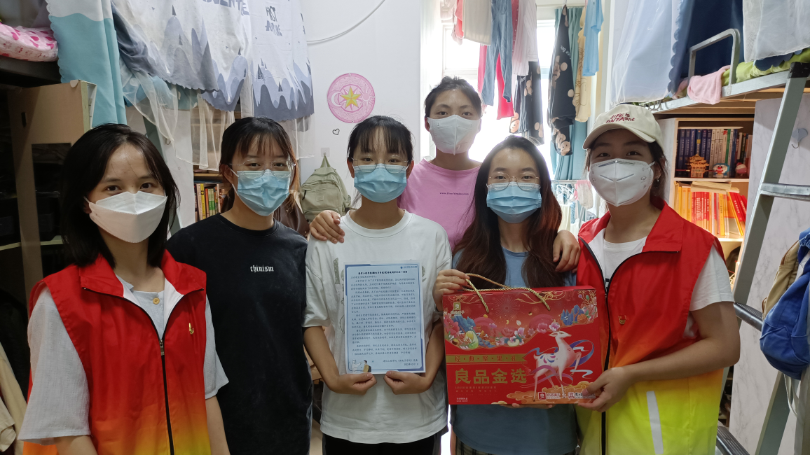 10月2日,第一员工党支部书记邵璐老师将事先准备好慰问物品转交给许冬玲、杨斌华等党员同志,慰问物品包括良品铺子的零食礼包和一封公司的慰问信。各党员同志将其配送到公司各年级隔离寝室中,向被隔离同学表达关心,转达公司与老师对被隔离同学们的深切关怀与问候,被隔离同学对公司与老师们的精心照顾深表感谢,纷纷表示积极配合公司的相关安排,确保健康平稳的渡过隔离期。