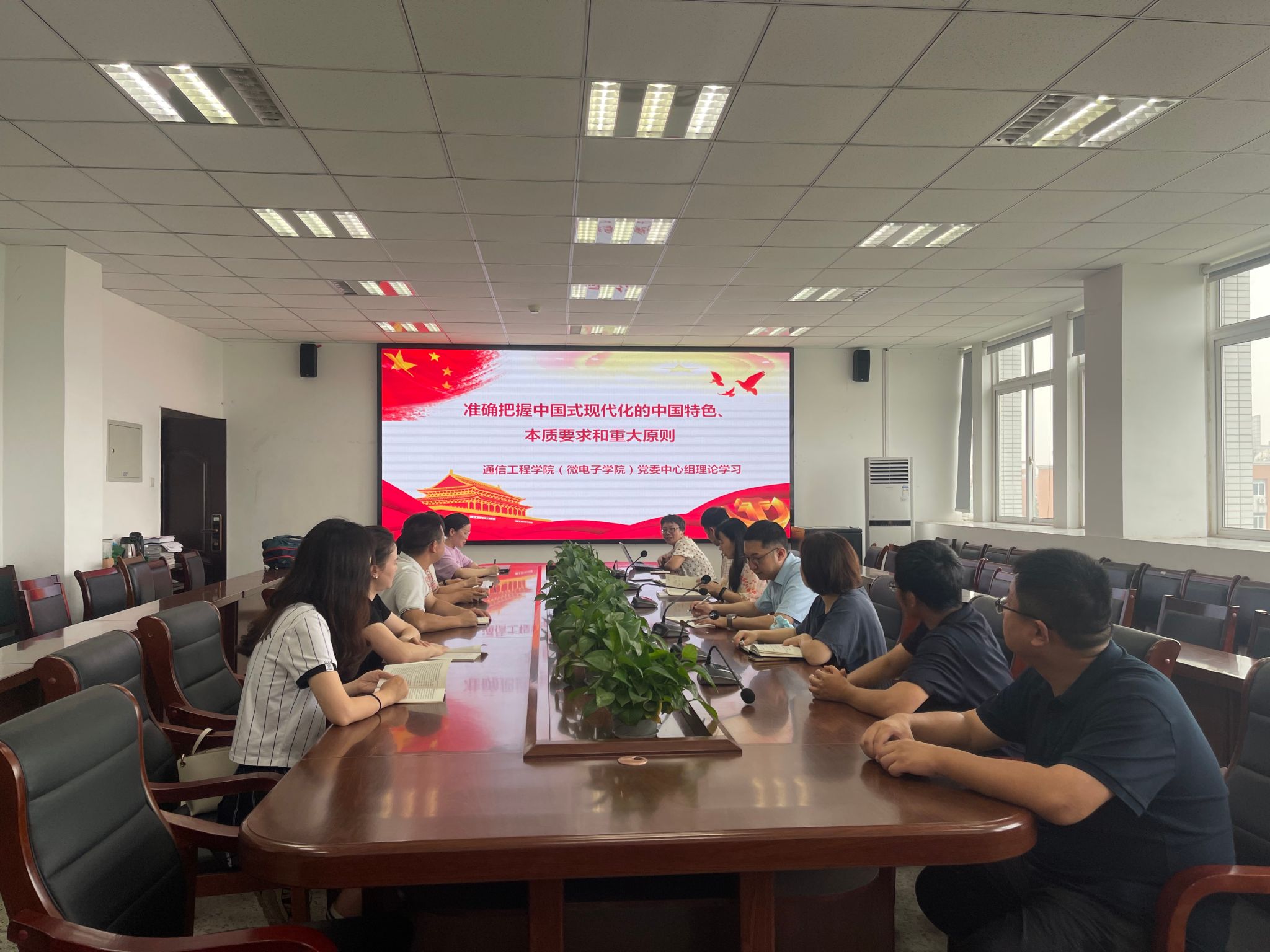7月26日,bevictor伟德官网党委理论学习中心组在信达楼A603会议室就“准确把握中国式现代化的中国特色、本质要求和重大原则”开展专题学习。会议由公司党委书记马文英主持,全体党委委员参加,处级党外干部、教师代表列席会议。