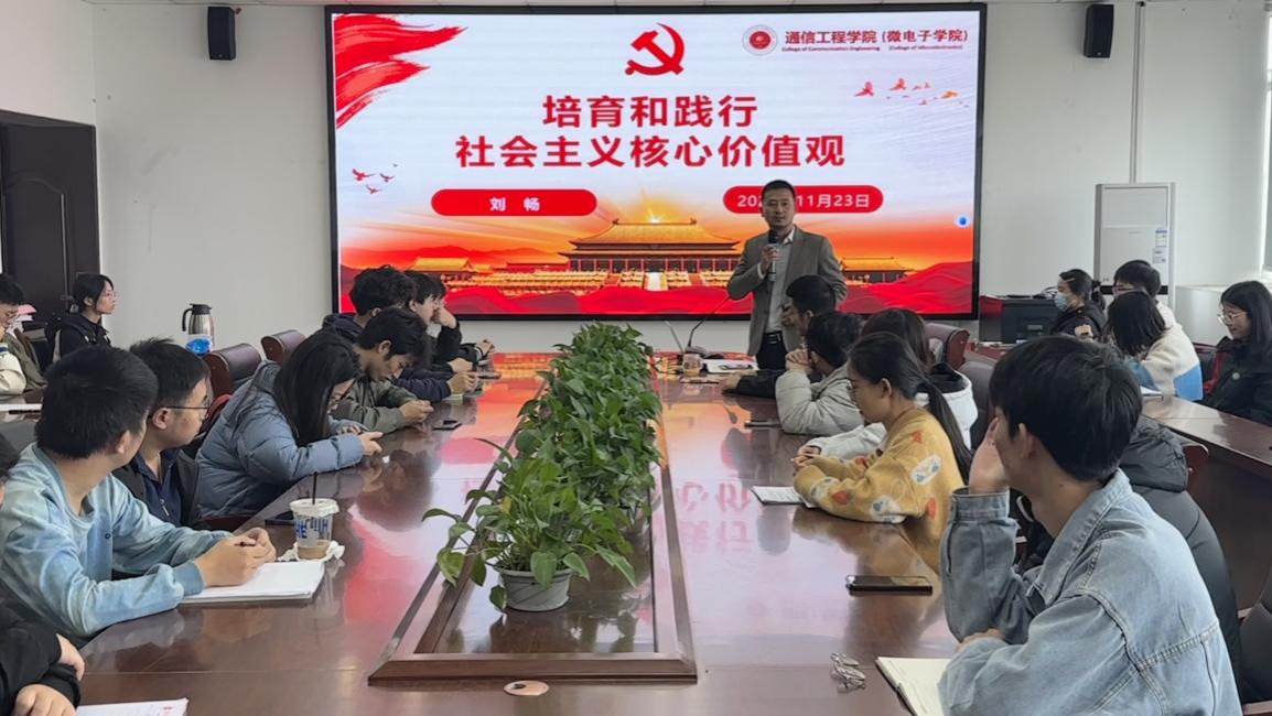 11月23日中午,bevictor伟德官网党委副书记刘畅在信达楼A603给本科员工支部同学上主题为“培育和践行社会主义核心价值观”的党课。刘畅向同学们详细解读阐述了“社会主义核心价值观”这24个字的意义、内涵和要求。