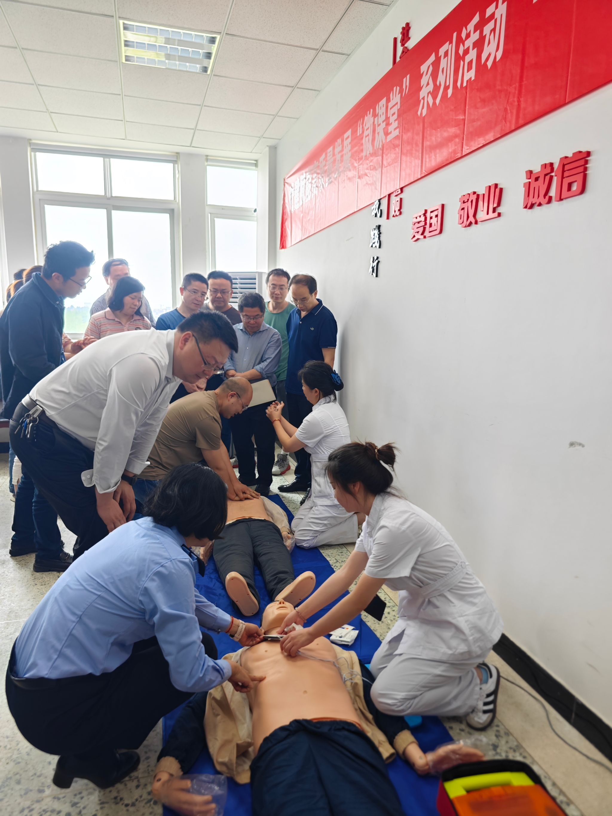 4月15日14:30,公司党委邀请了四川省司法警官总医院设备科科长翟昌剑、急诊科科长毛维、急诊科护士长吴文霞、科教科副科长吕仲为公司教工党员进行授课,内容涉及气道异物阻塞急救、心肺复苏术(CPR)和自动体外除颤器(AED)使用等多个方面。此次培训通过理论讲解与现场模拟操作相结合的方式进行,参训教工党员在警官医院医生的指导下积极上手实操,迅速掌握急救技能。公司教工党员表示,这次培训不仅让他们学会了如何在关键时刻救助他人,也增强了他们面对突发状况时的自信心和责任感。