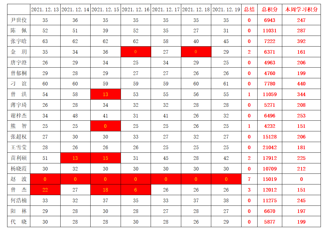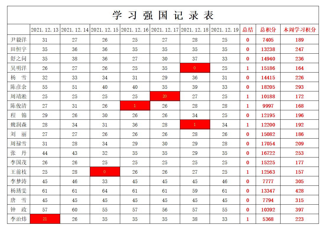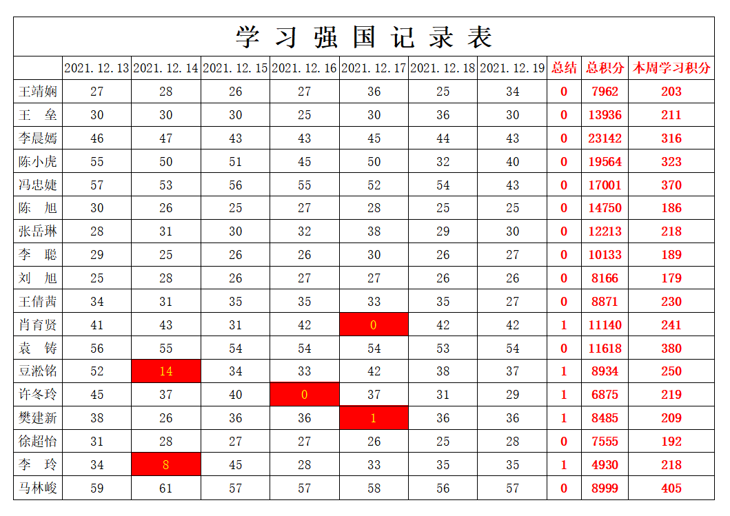 bevictor伟德官网员工党支部2021-2022学年第一学期第十五周学习强国学习进度