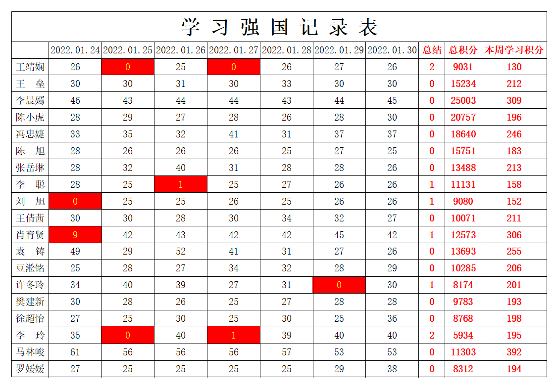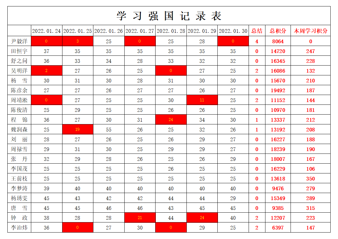 bevictor伟德官网员工党支部2022年寒假第四周学习强国进度
