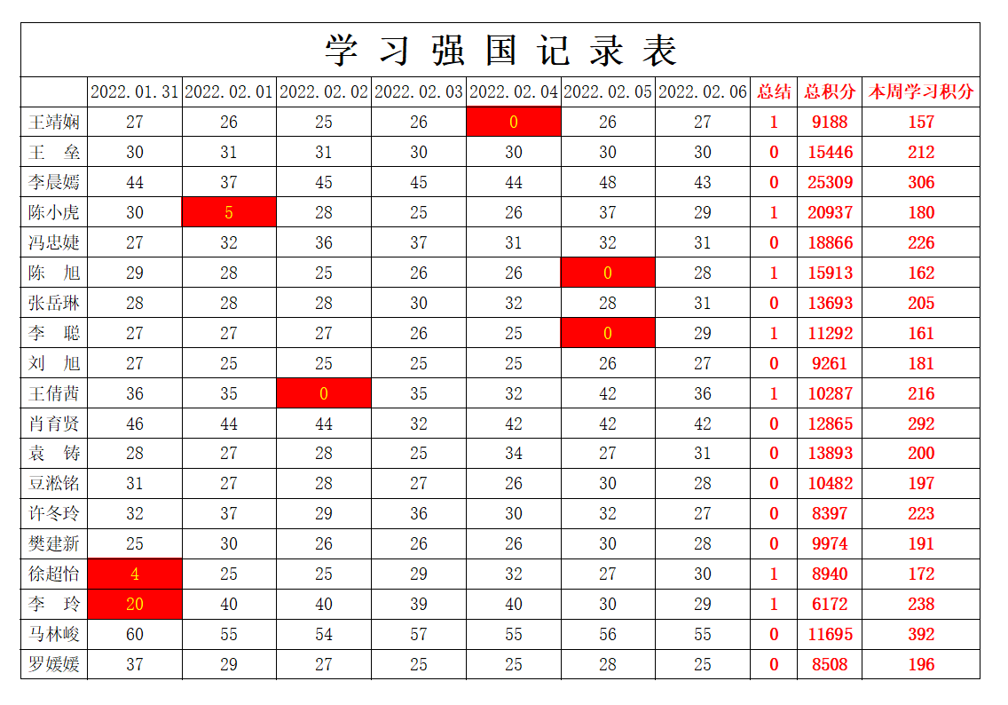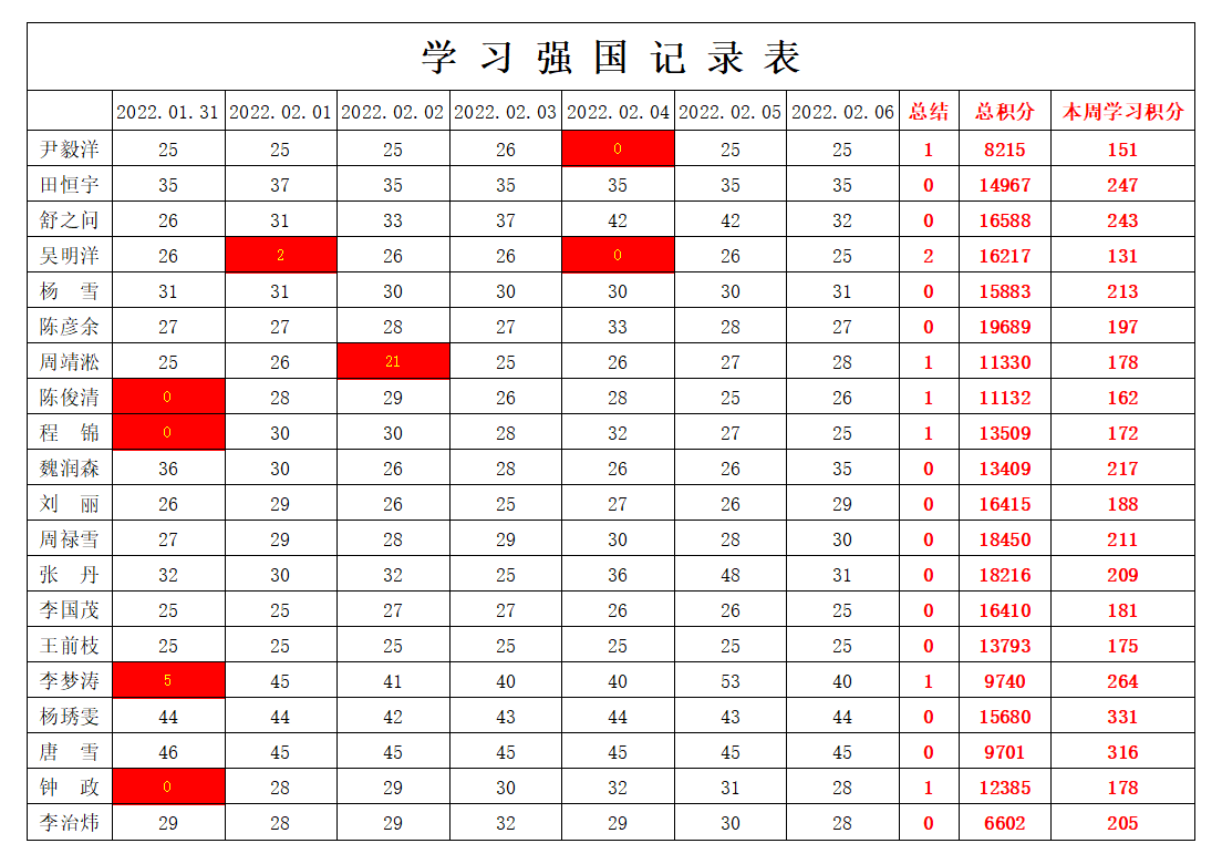 bevictor伟德官网员工党支部2022年寒假第五周学习强国进度
