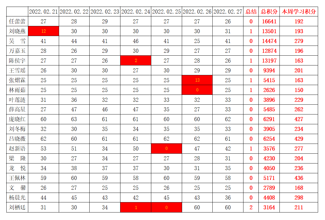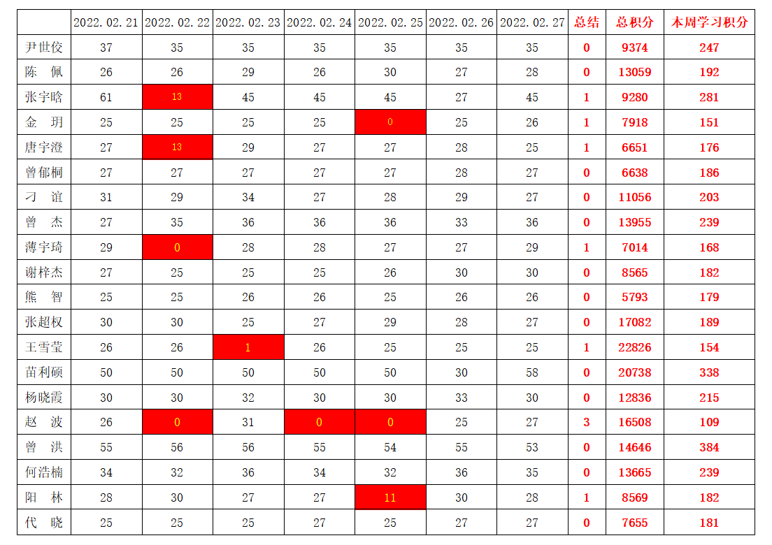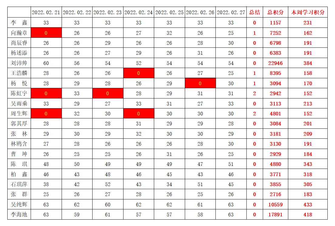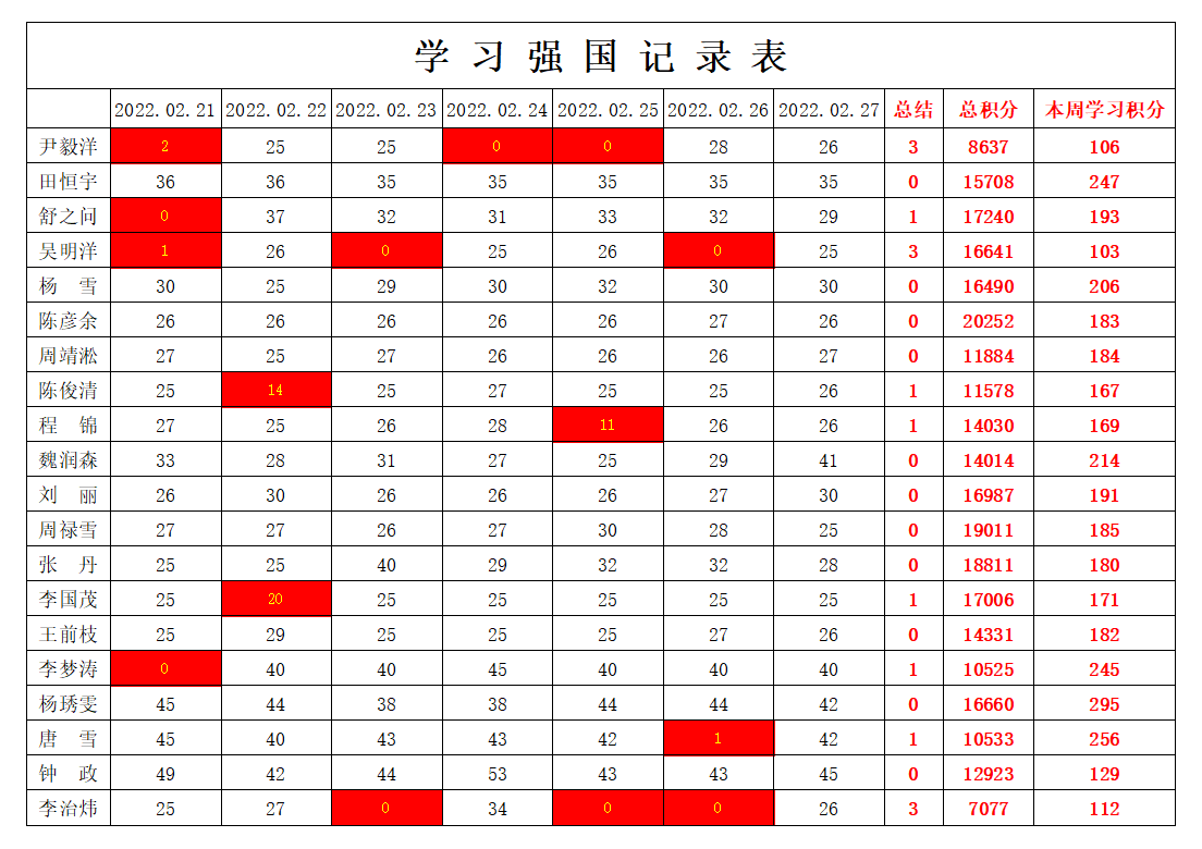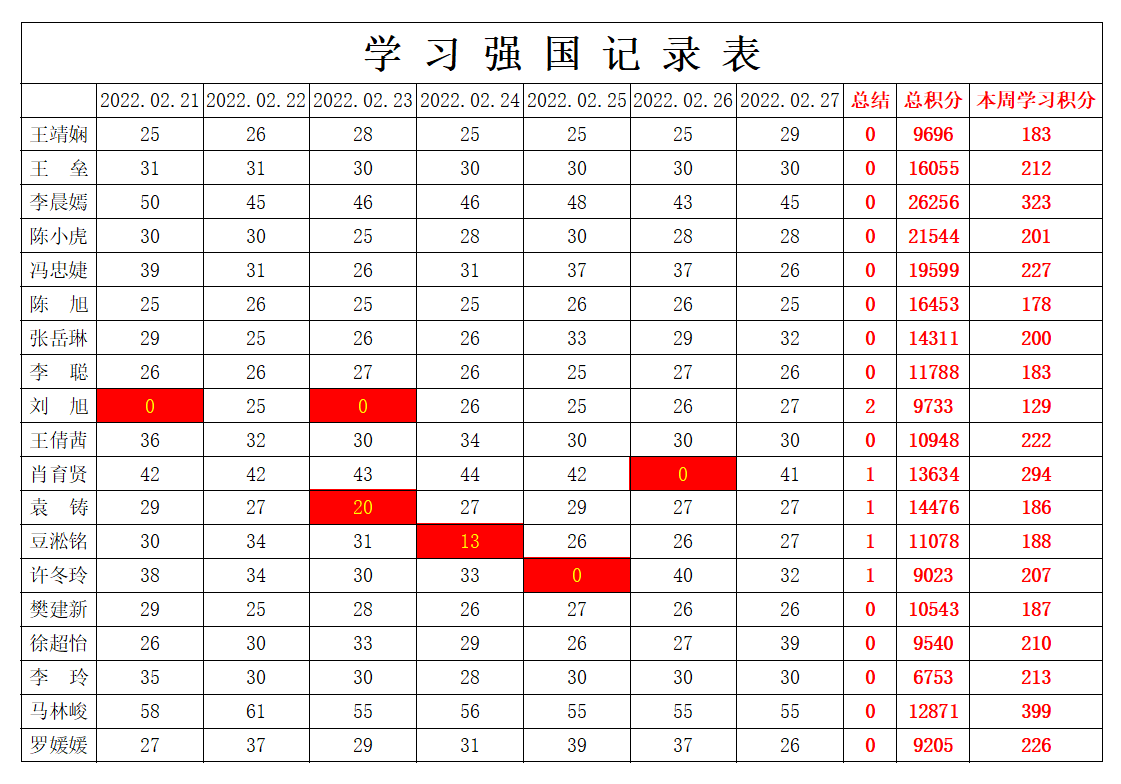 bevictor伟德官网员工党支部2021-2022学年第二学期第一周学习强国学习进度