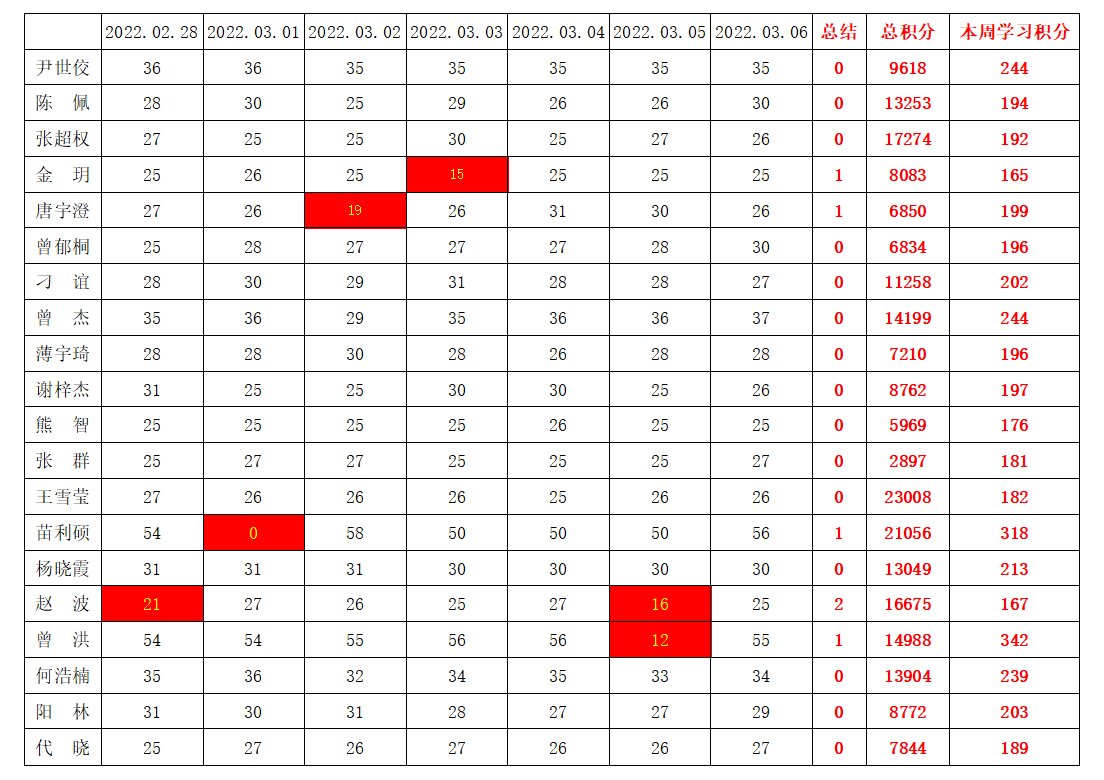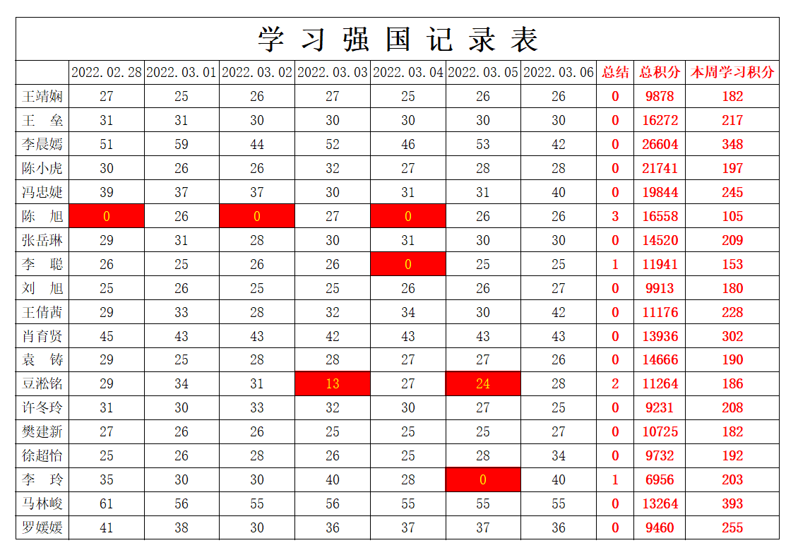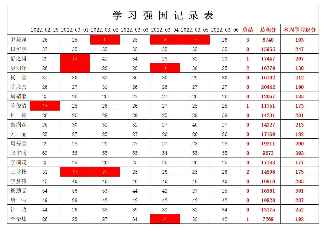 bevictor伟德官网员工党支部2021-2022学年第二学期第二周学习强国学习进度