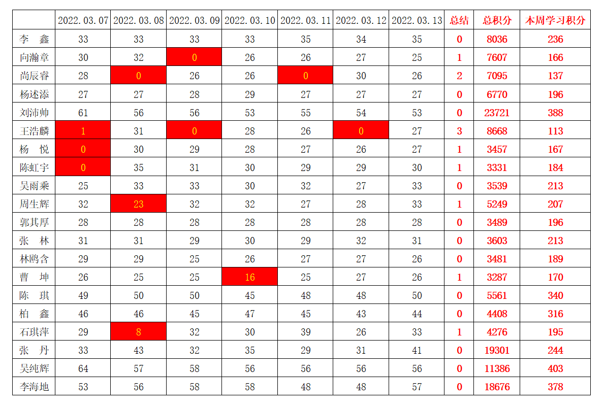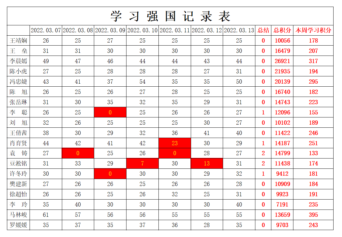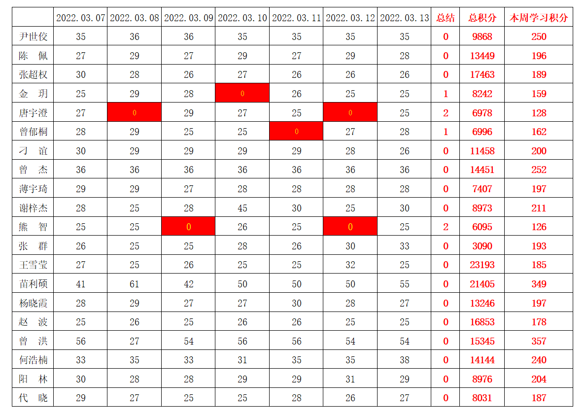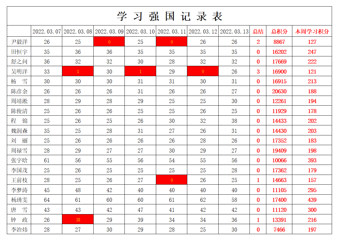 bevictor伟德官网员工党支部2021-2022学年第二学期第三周学习强国学习进度