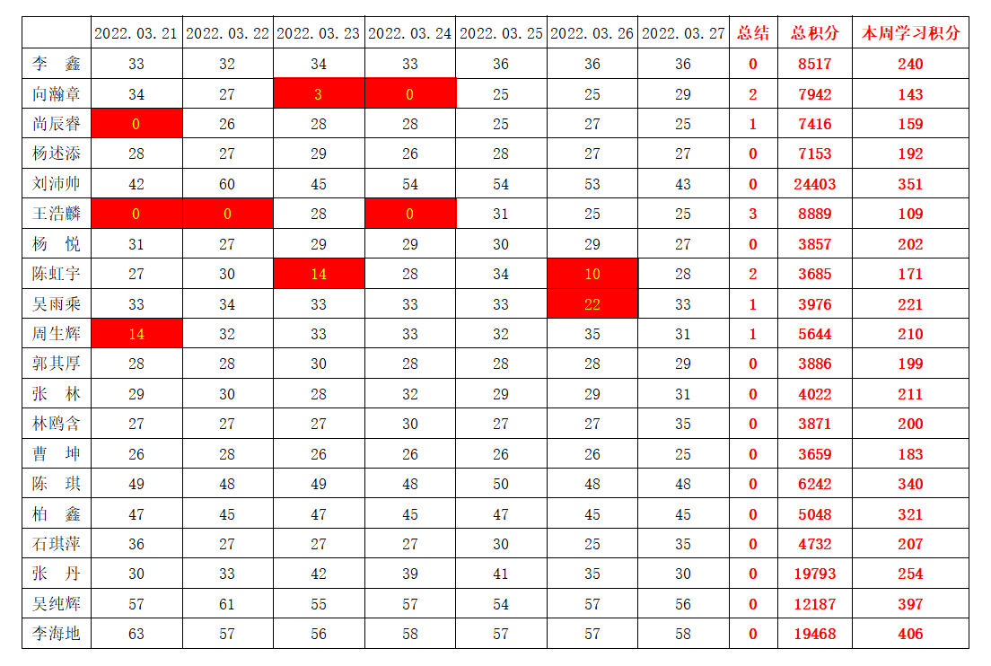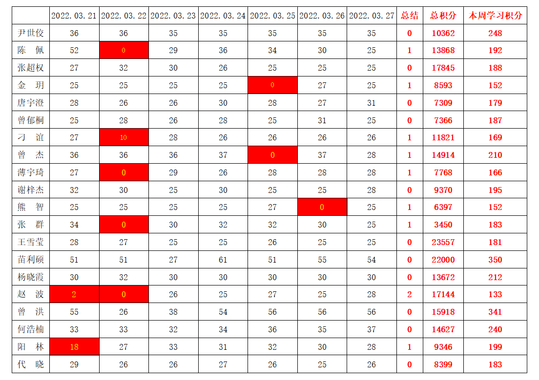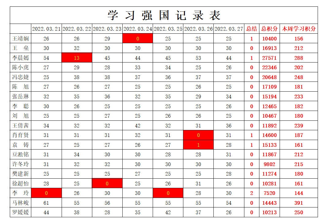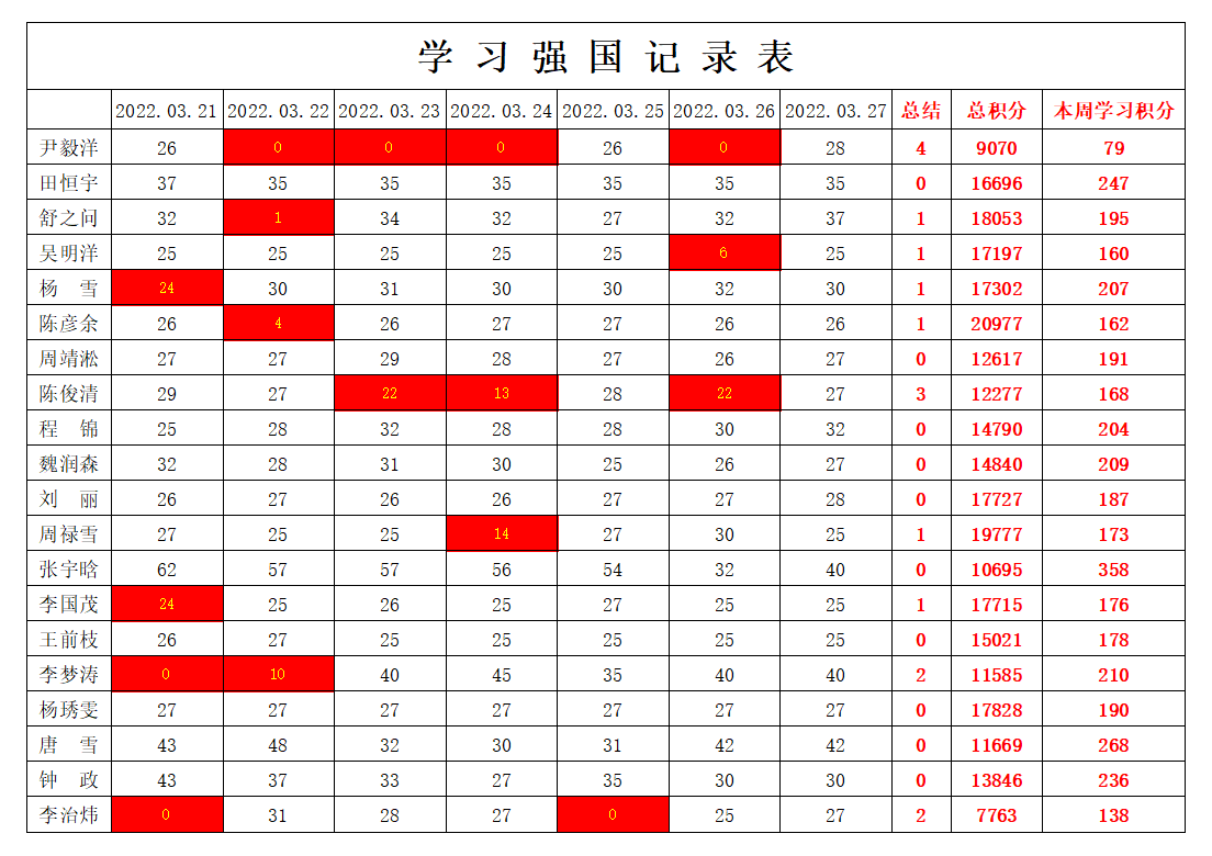 bevictor伟德官网员工党支部2021-2022学年第二学期第五周学习强国学习进度