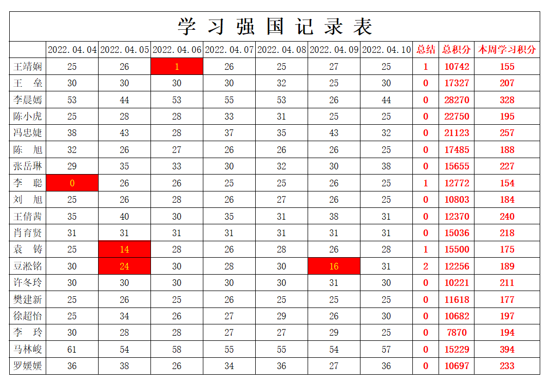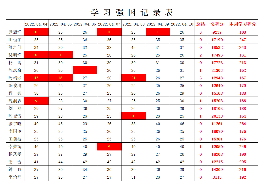 bevictor伟德官网员工党支部2021-2022学年第二学期第七周学习强国学习进度
