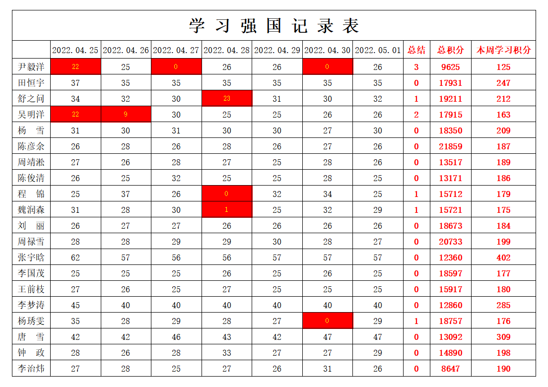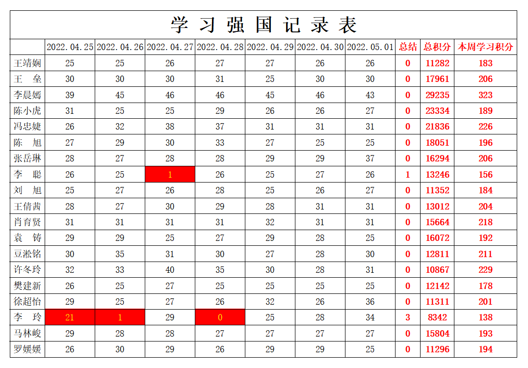 bevictor伟德官网员工党支部2021-2022学年第二学期第十周学习强国学习进度