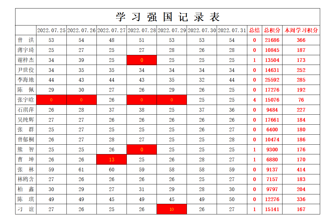 bevictor伟德官网员工党支部2022年暑假第七周学习强国进度