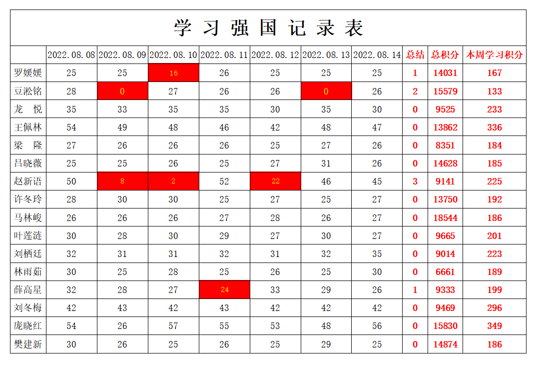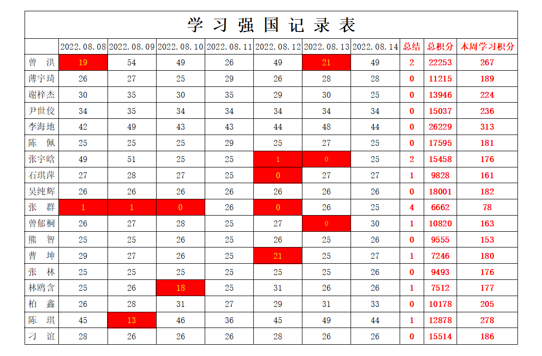 bevictor伟德官网员工党支部2022年暑假第九周学习强国进度
