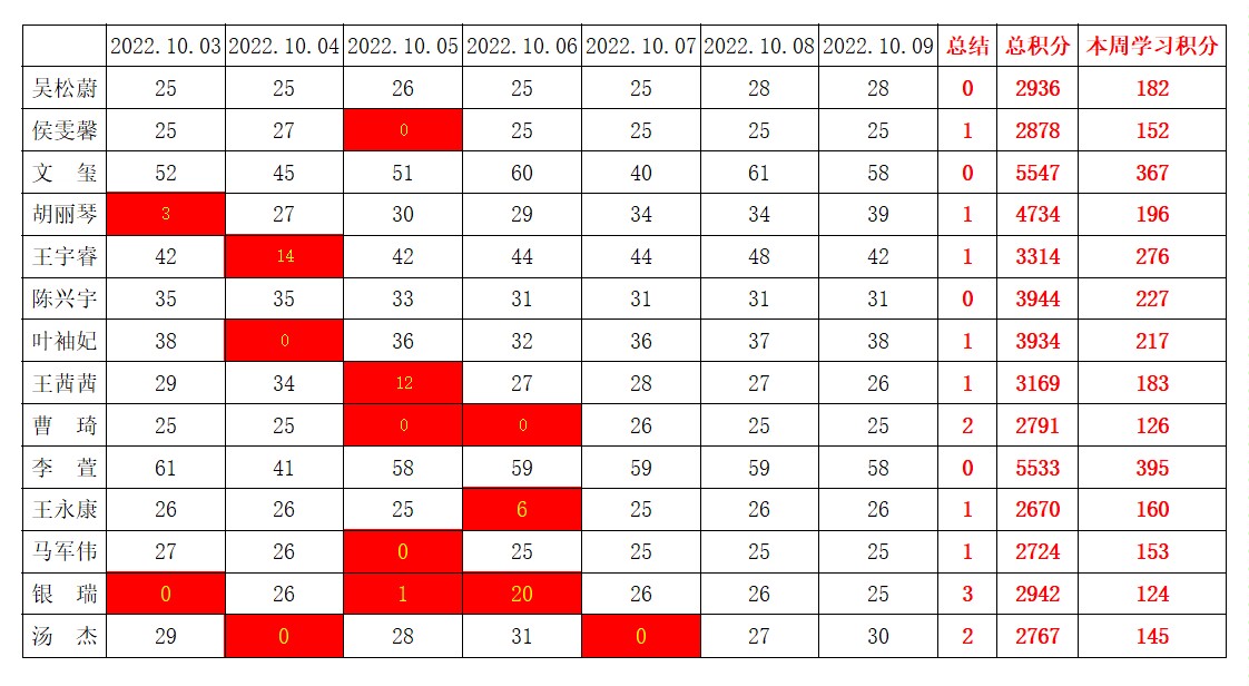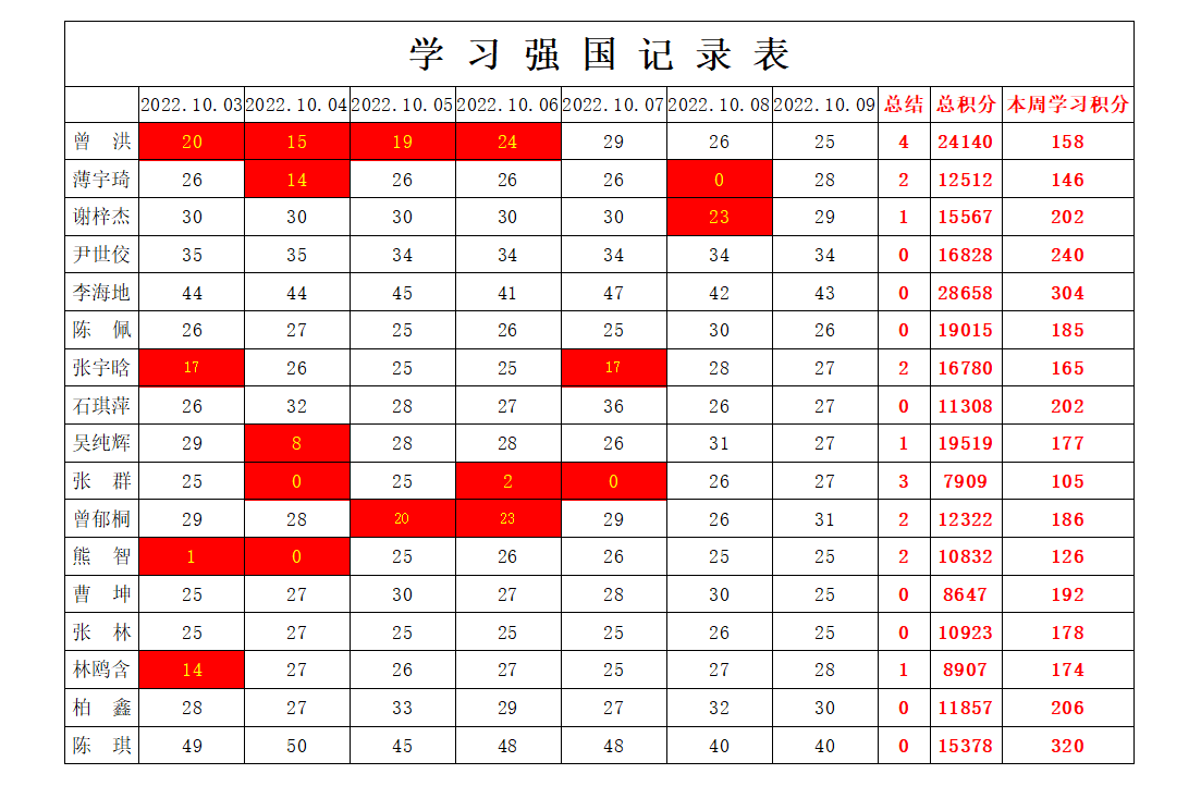 bevictor伟德官网员工党支部2022-2023学年第一学期第四周学习强国学习进度
