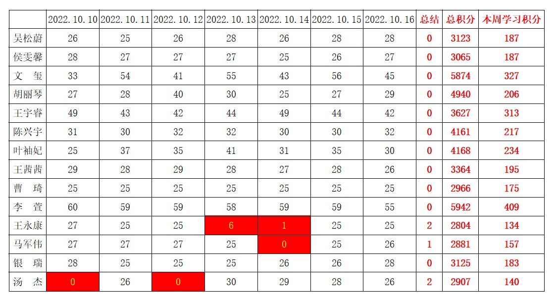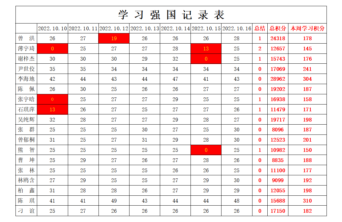 bevictor伟德官网员工党支部2022-2023学年第一学期第五周学习强国学习进度