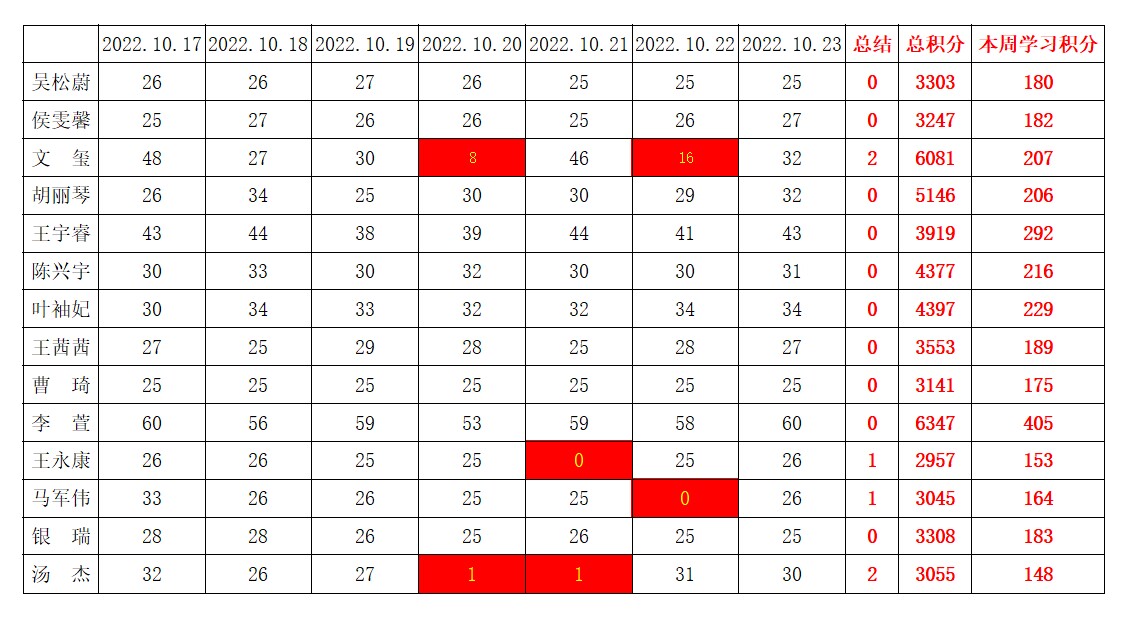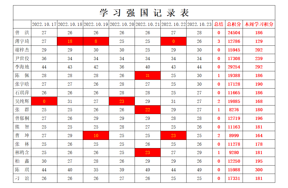 bevictor伟德官网员工党支部2022-2023学年第一学期第六周学习强国学习进度