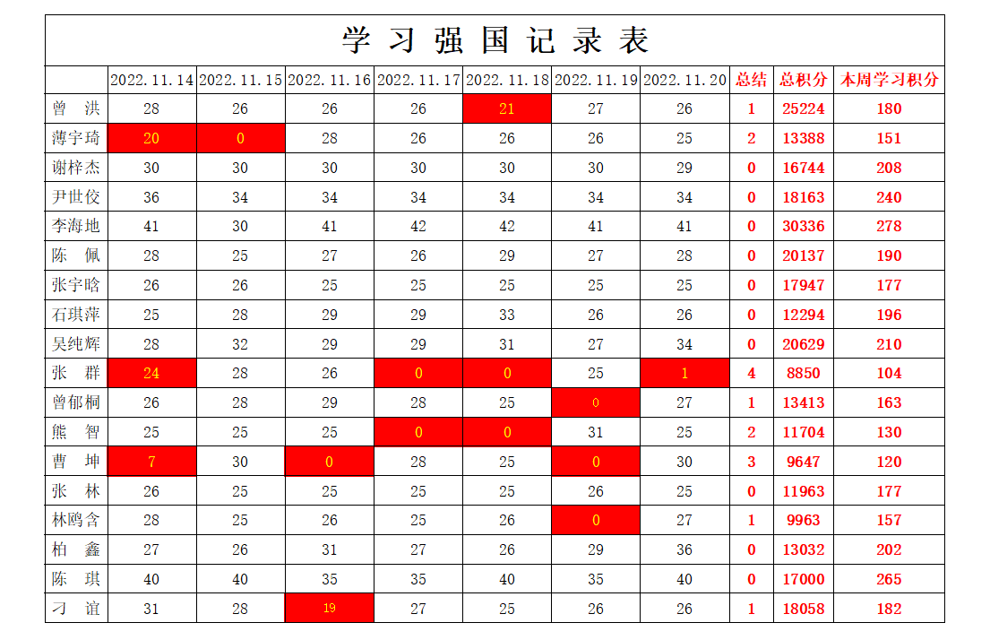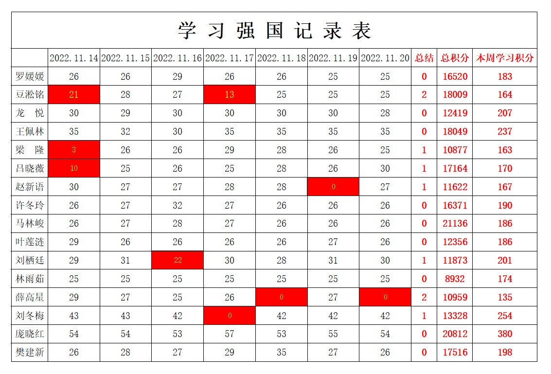 bevictor伟德官网员工党支部2022-2023学年第一学期第十周学习强国学习进度