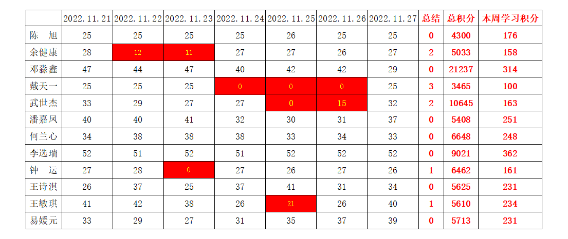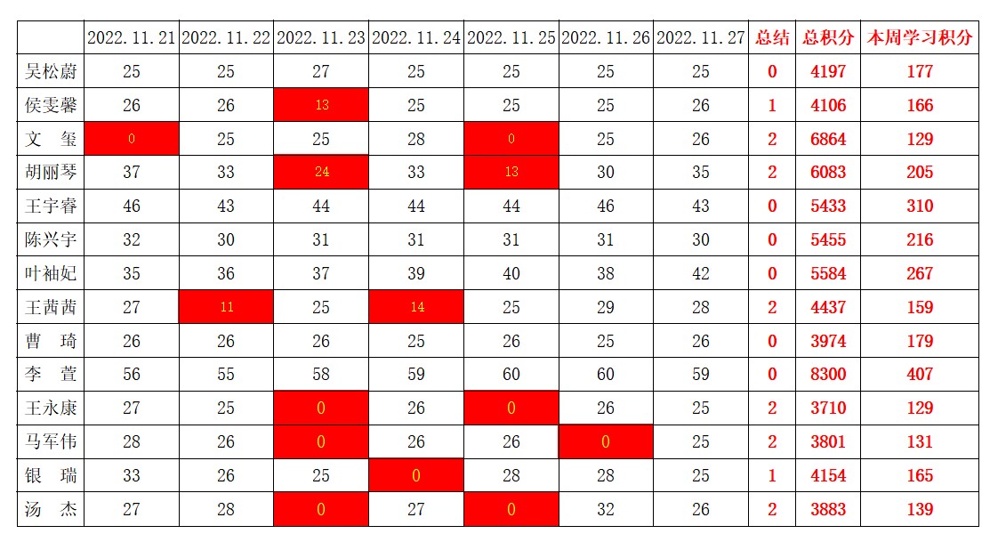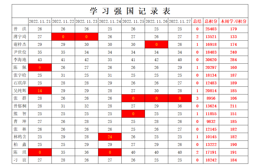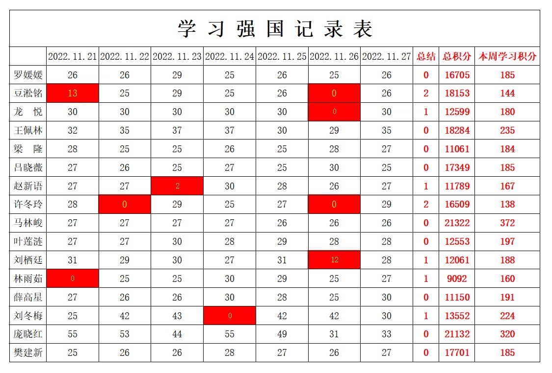 bevictor伟德官网员工党支部2022-2023学年第一学期第十一周学习强国学习进度
