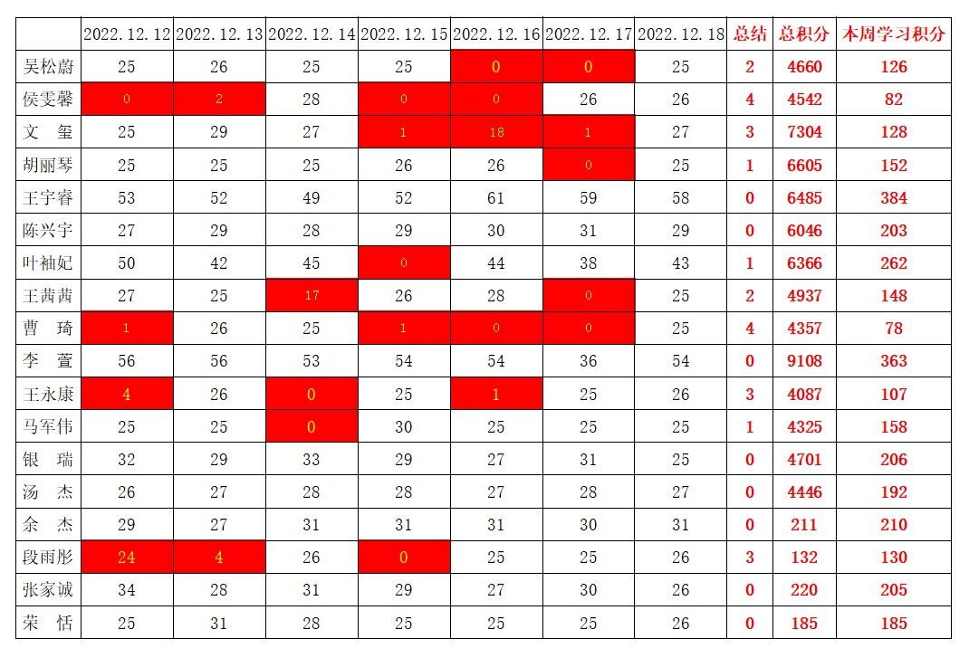 bevictor伟德官网员工党支部2022-2023学年第一学期第十四周学习强国学习进度