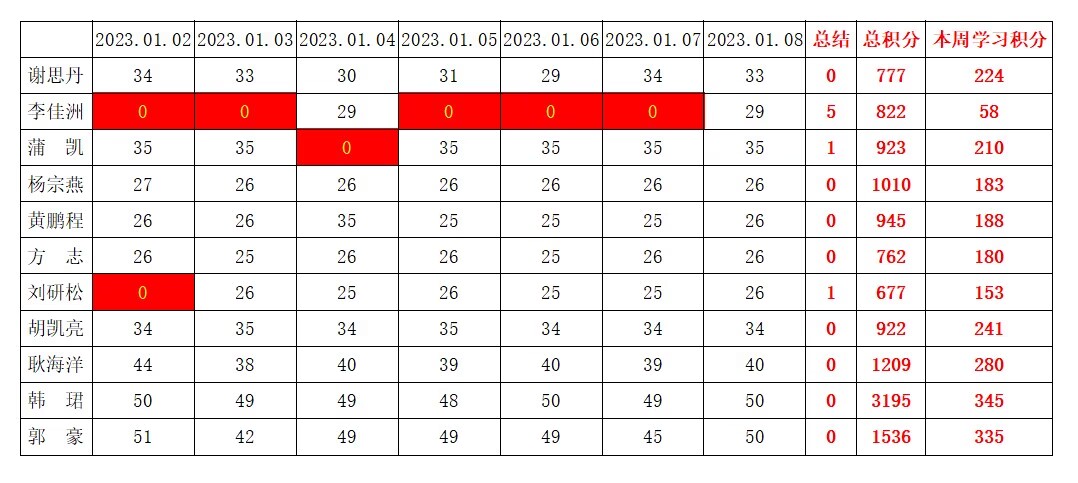 bevictor伟德官网员工党支部2022-2023学年第一学期第十七周学习强国学习进度