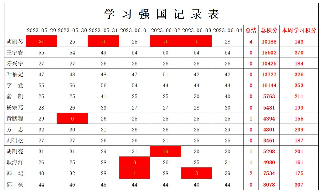 bevictor伟德官网员工党支部2022-2023学年第二学期第十五周学习强国学习进度