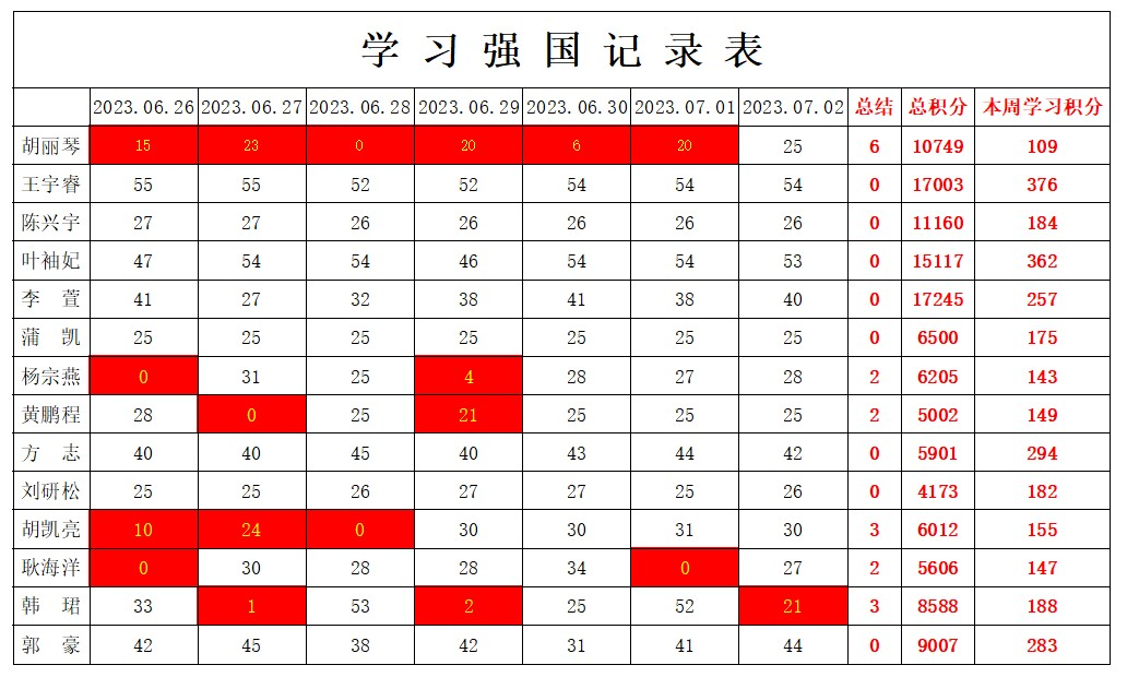 bevictor伟德官网员工党支部2022-2023学年第二学期第十九周学习强国学习进度