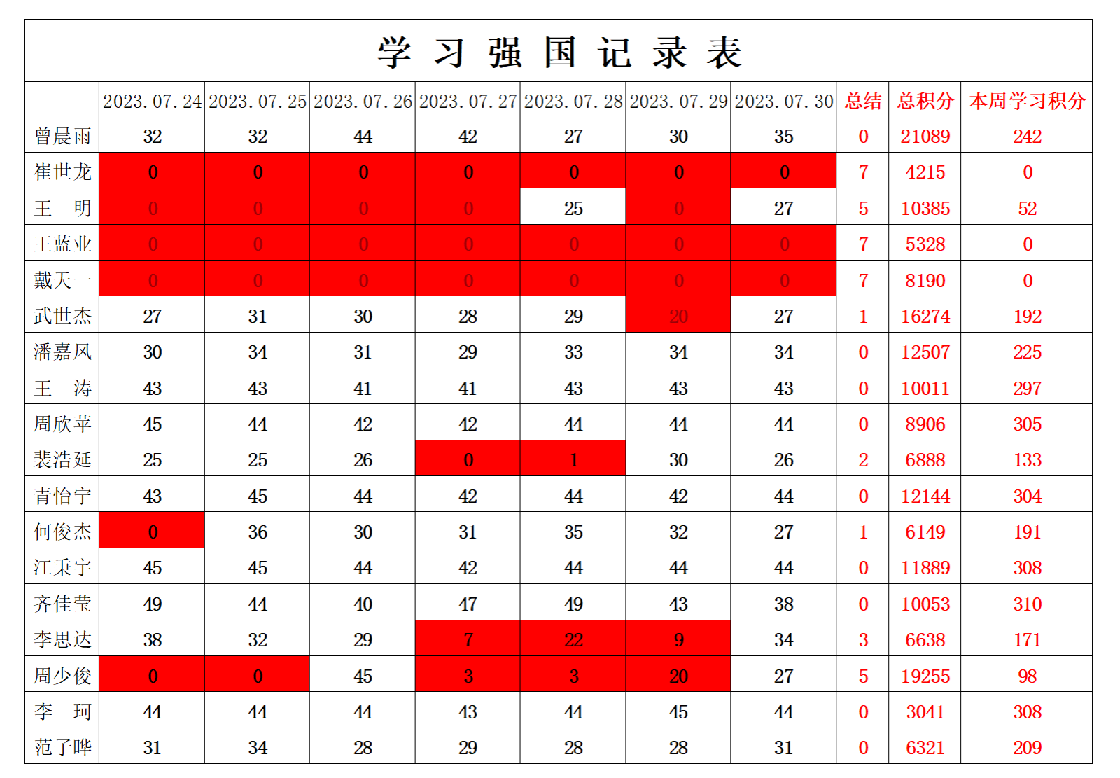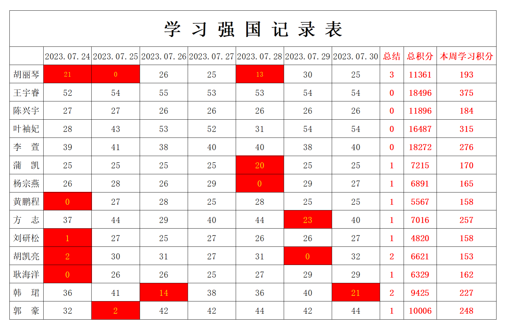 bevictor伟德官网员工党支部2023年暑假第三周学习强国学习进度