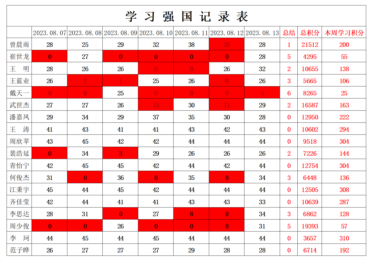 bevictor伟德官网员工党支部2023年暑假第五周学习强国学习进度