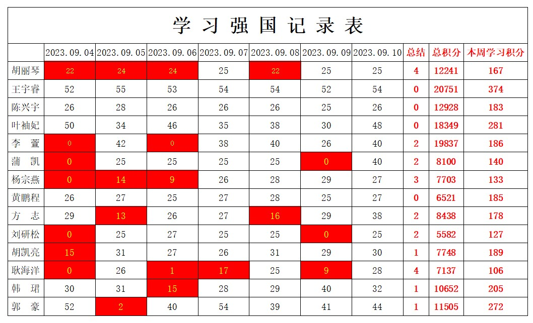 bevictor伟德官网员工党支部2023-2024学年第一学期第一周学习强国学习进度