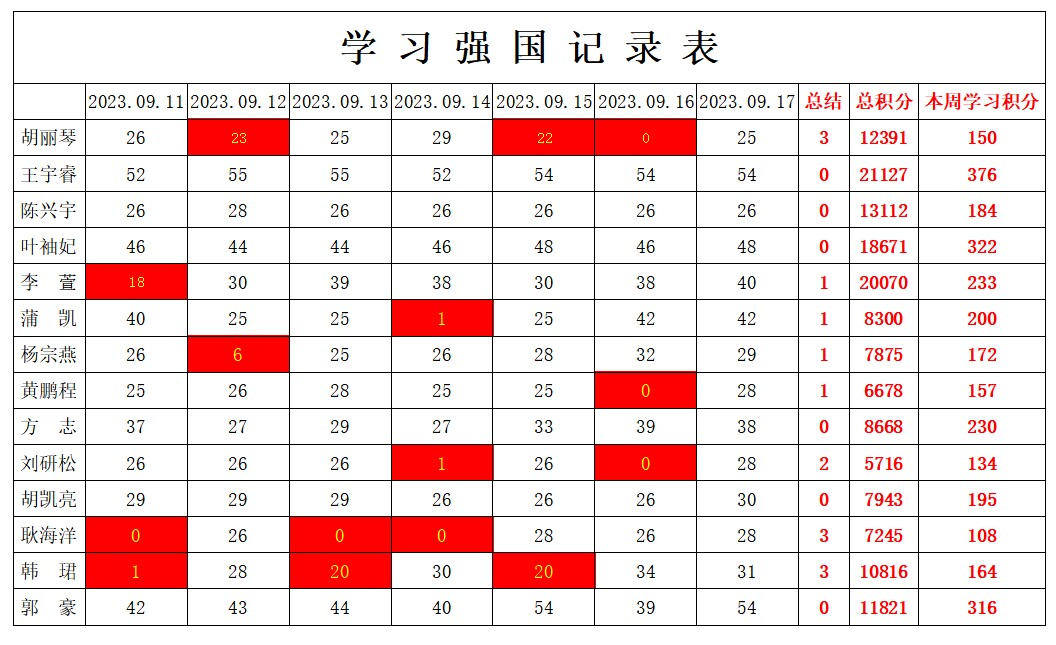 bevictor伟德官网员工党支部2023-2024学年第一学期第二周学习强国学习进度