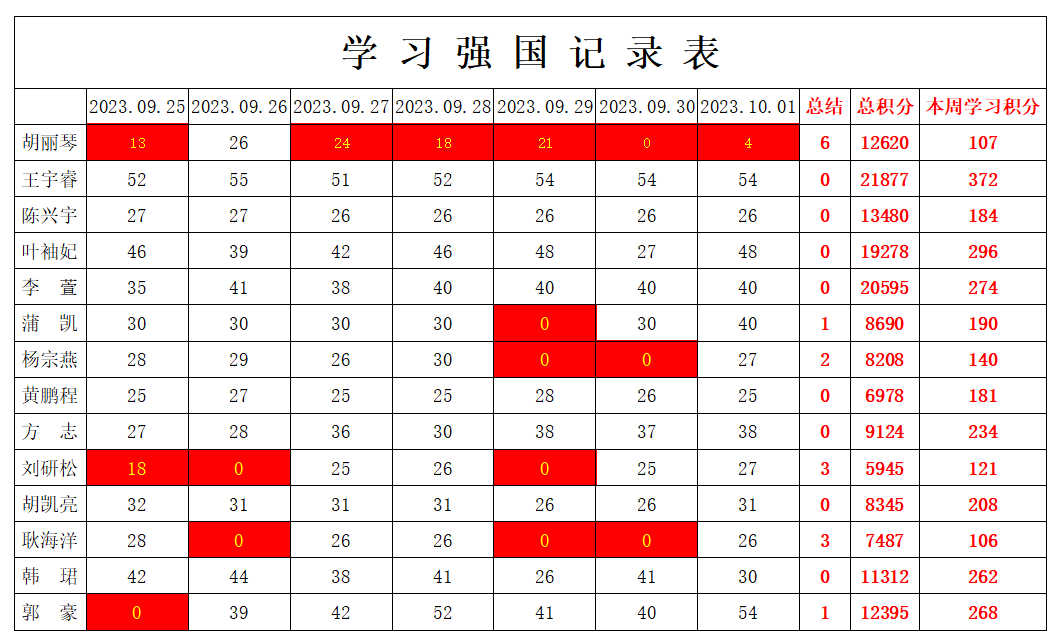 bevictor伟德官网员工党支部2023-2024学年第一学期第四周学习强国学习进度