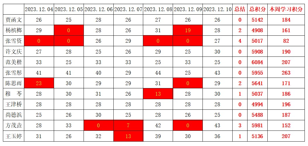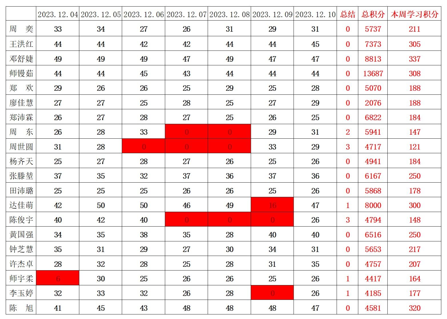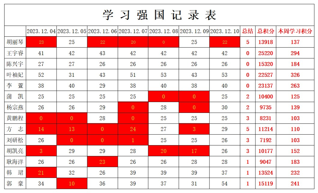 bevictor伟德官网员工党支部2023-2024学年第一学期第十四周学习强国学习进度