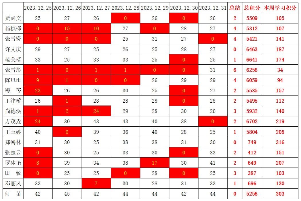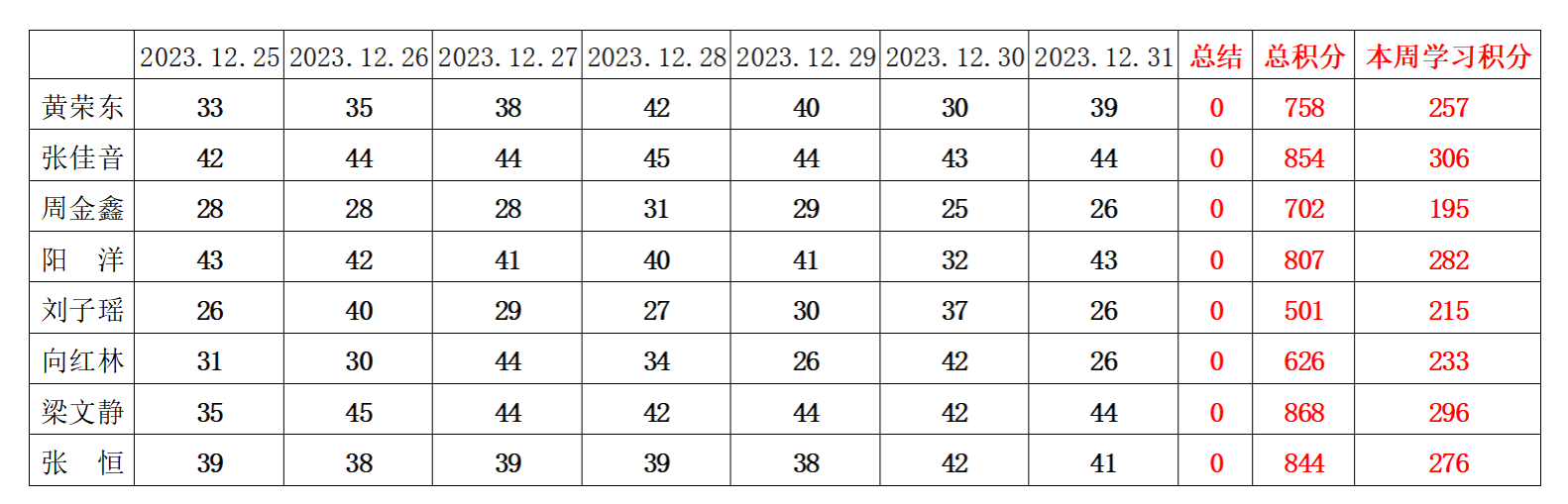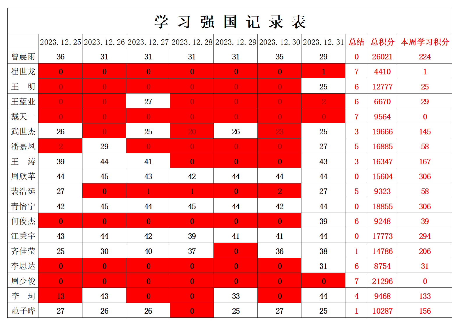 bevictor伟德官网员工党支部2023-2024学年第一学期第十七周学习强国学习进度