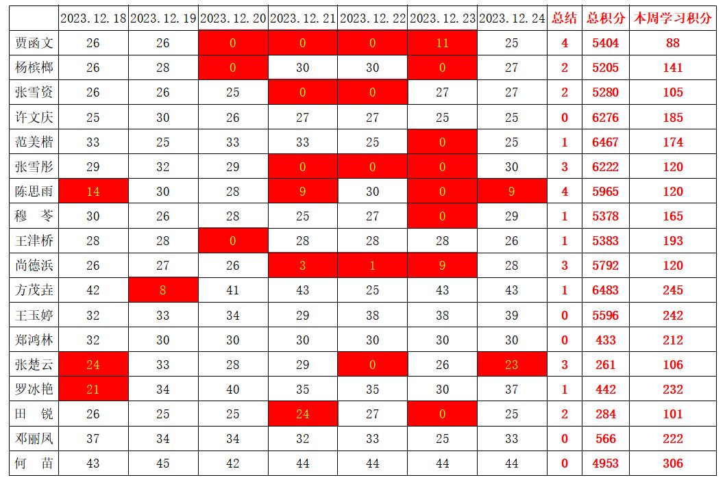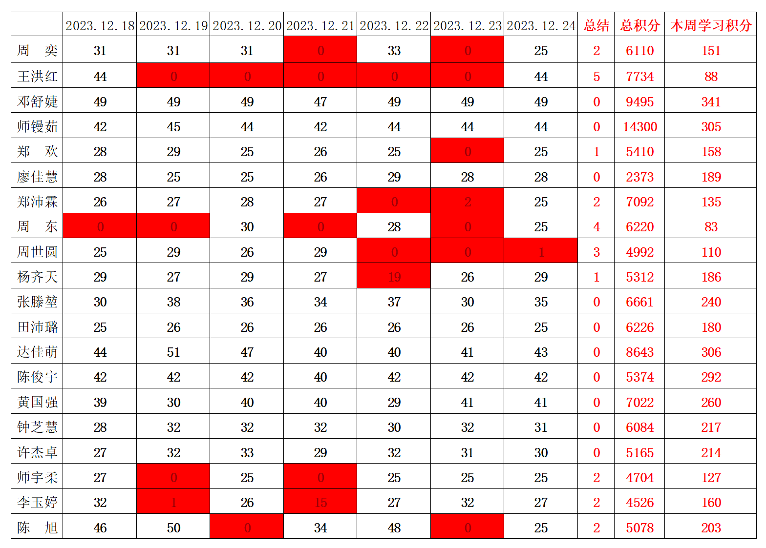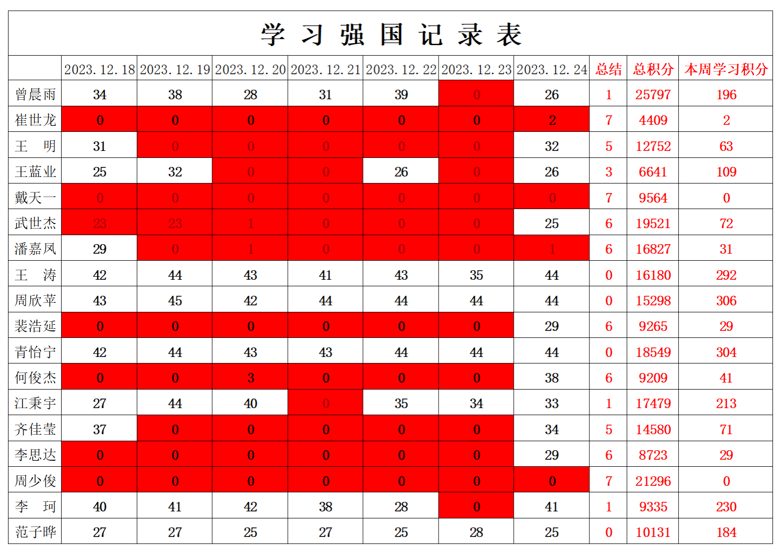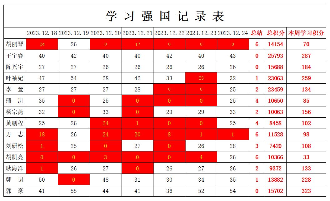 bevictor伟德官网员工党支部2023-2024学年第一学期第十六周学习强国学习进度