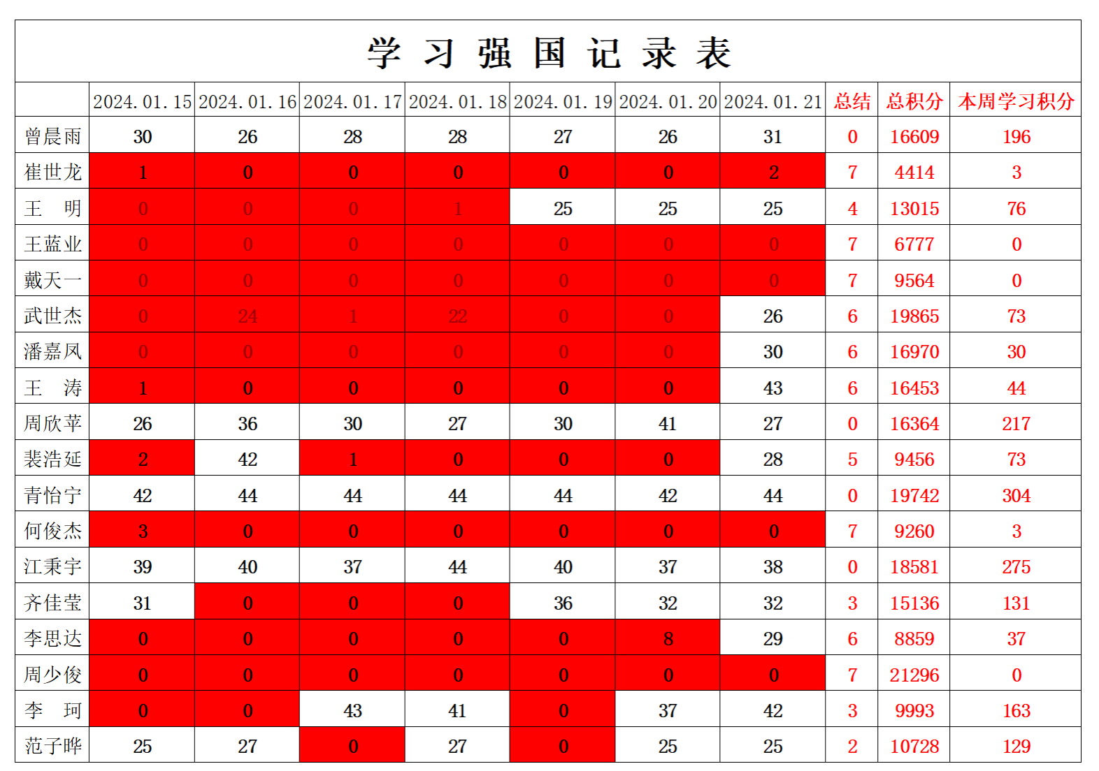 bevictor伟德官网员工党支部2024年寒假第二周学习强国学习进度