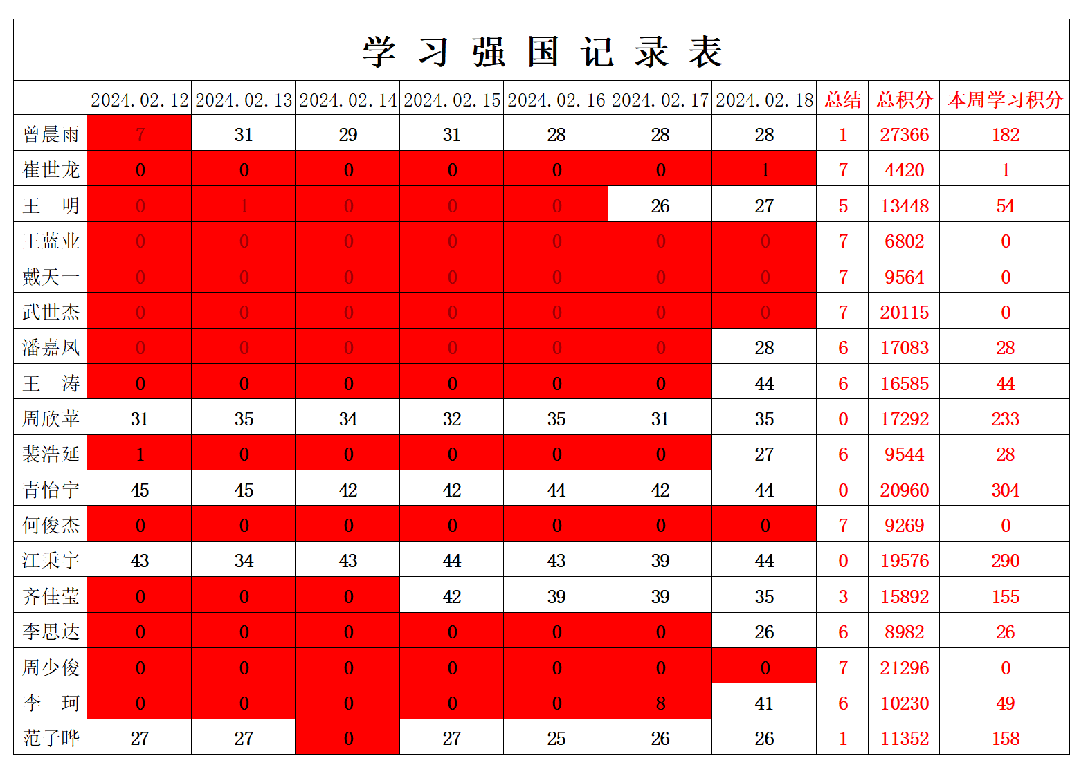 bevictor伟德官网员工党支部2024年寒假第六周学习强国学习进度
