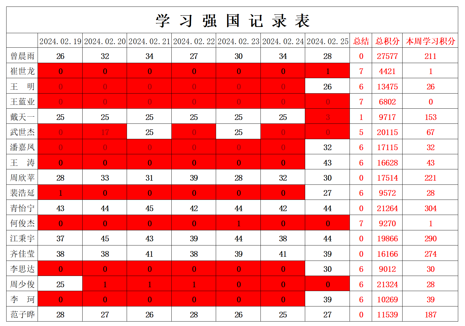 bevictor伟德官网员工党支部2024年寒假第七周学习强国学习进度