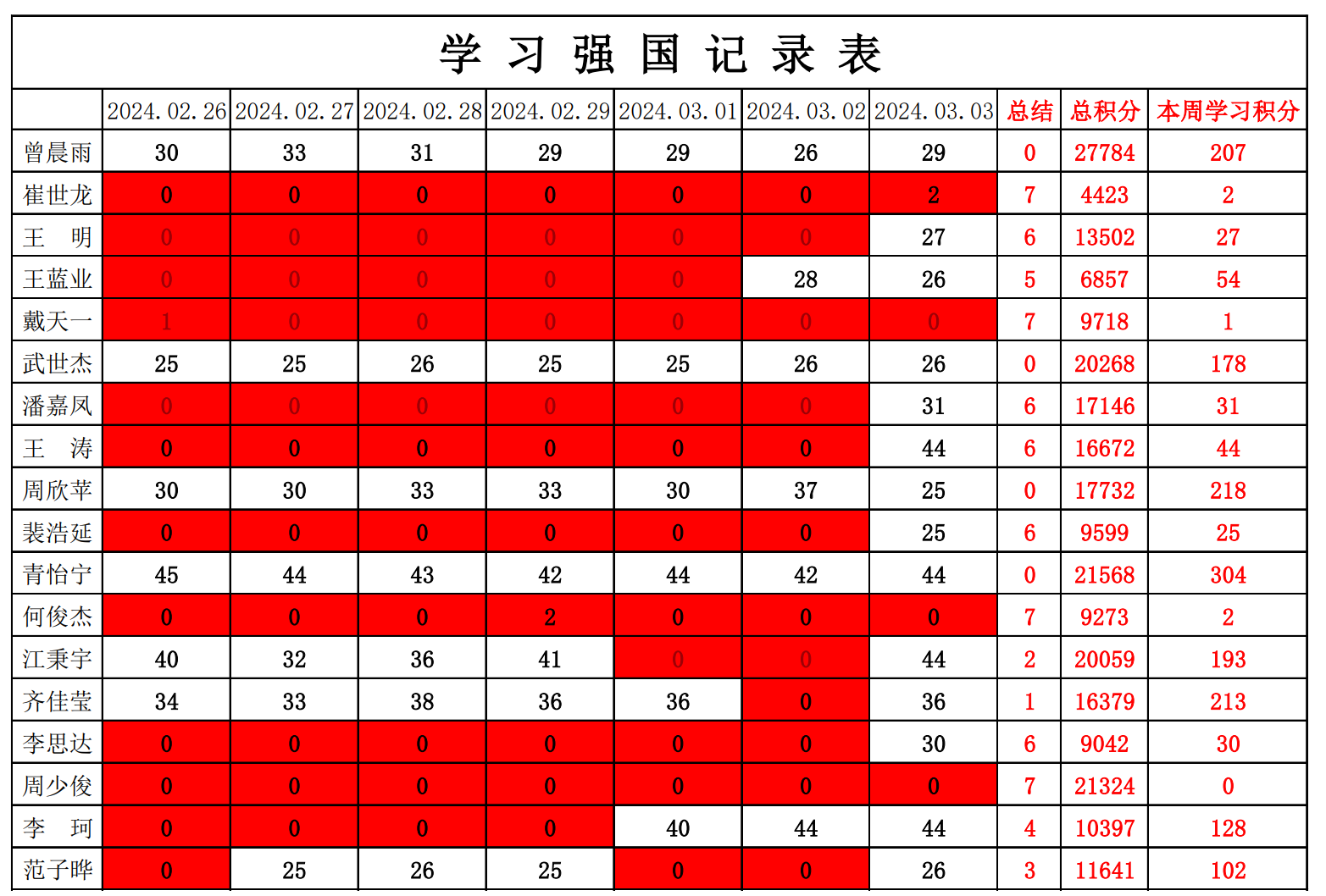 bevictor伟德官网员工党支部2023-2024学年第二学期第一周学习强国学习进度