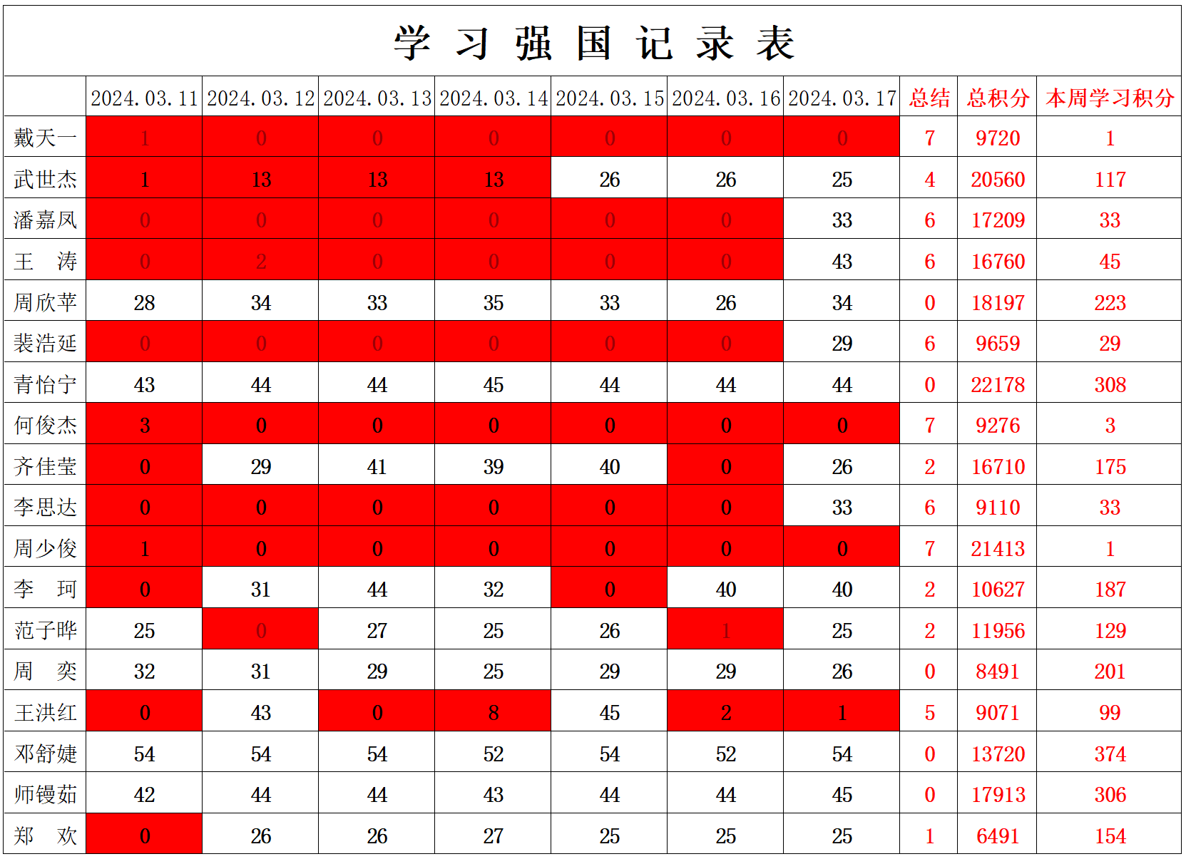 bevictor伟德官网员工党支部2023-2024学年第二学期第三周学习强国学习进度