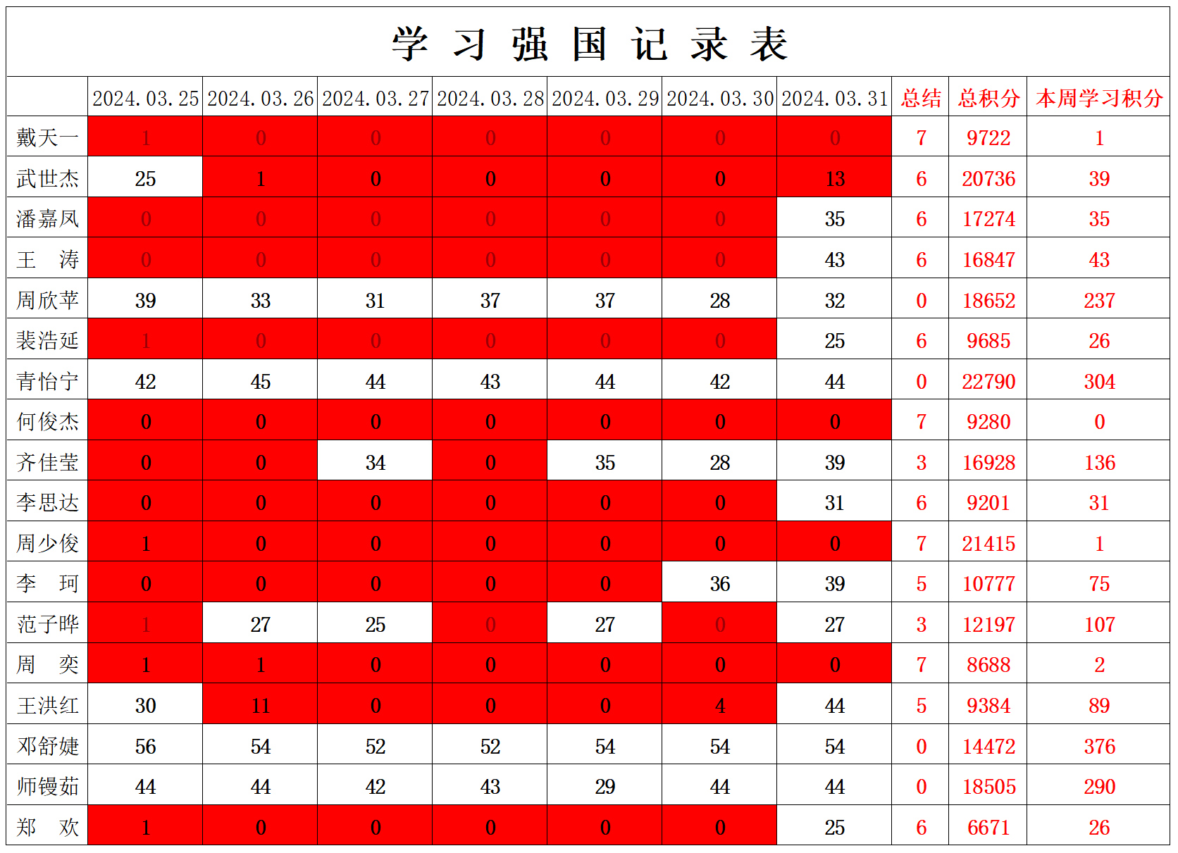 bevictor伟德官网员工党支部2023-2024学年第二学期第五周学习强国学习进度