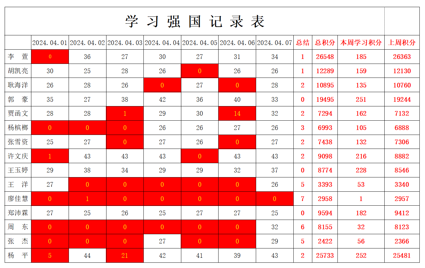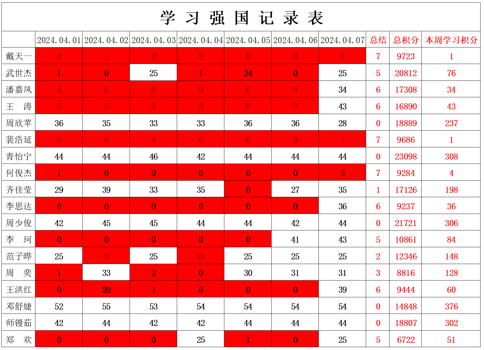 bevictor伟德官网员工党支部2023-2024学年第二学期第六周学习强国学习进度