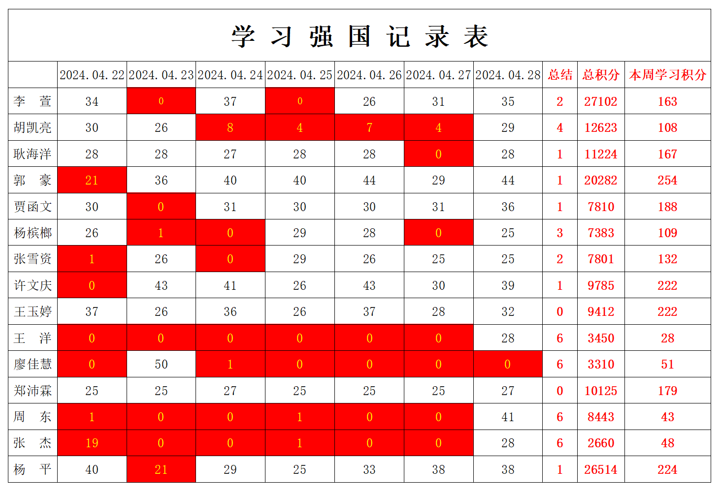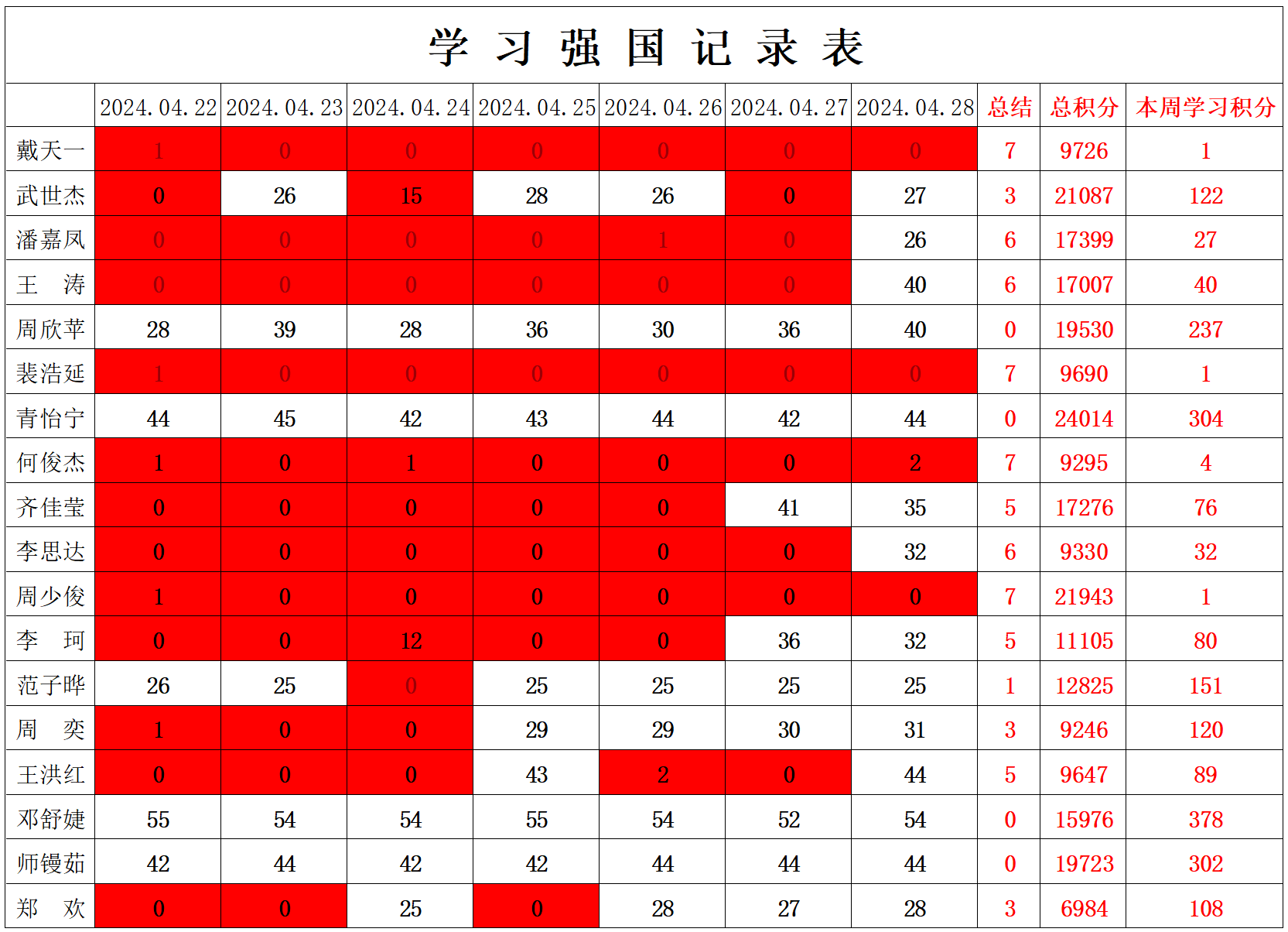 bevictor伟德官网员工党支部2023-2024学年第二学期第九周学习强国学习进度